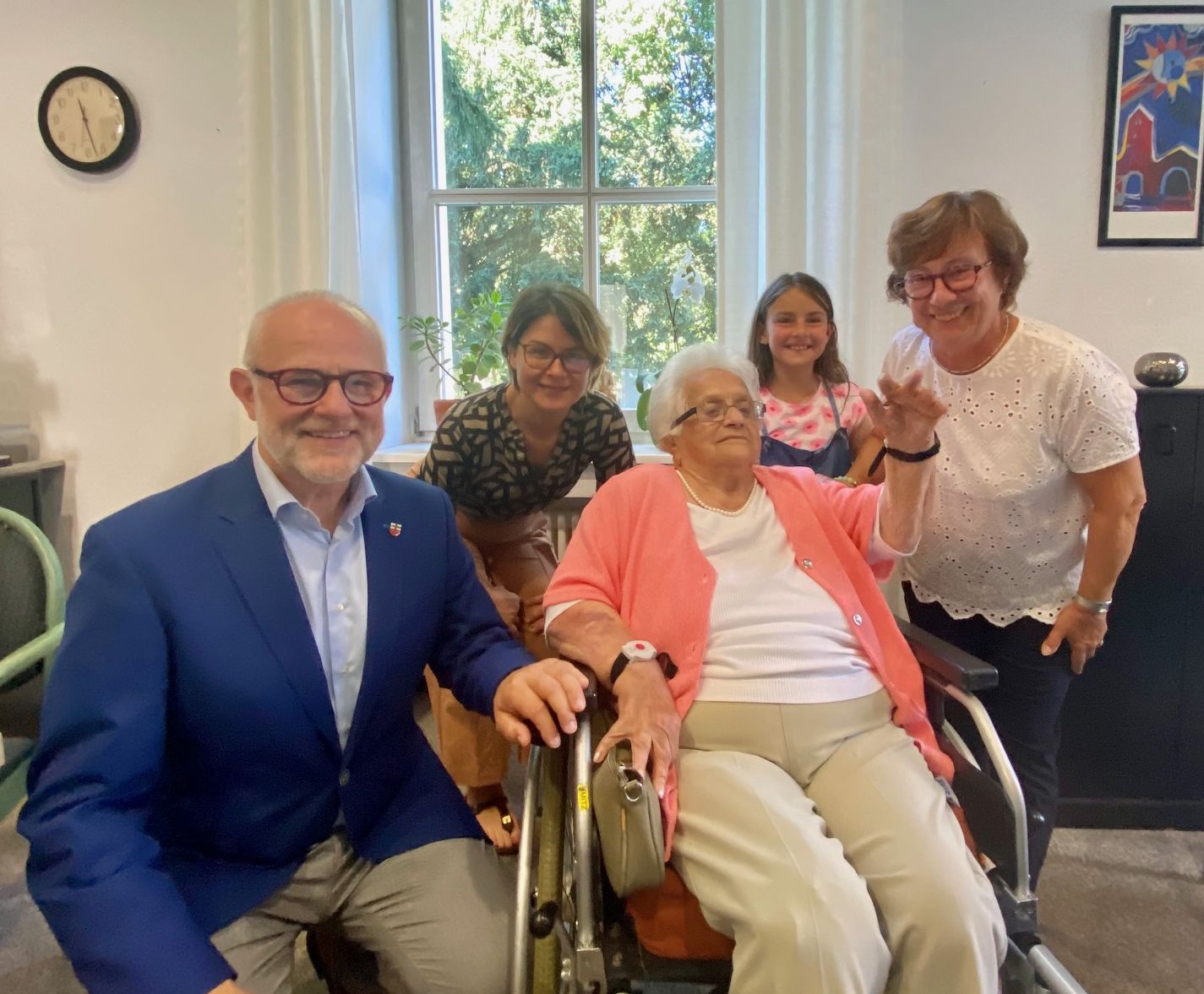Ein schönes Gruppenbild mit ihrer Tochter, Urenkelin, dem Stadtbürgermeister Alfons Mußhoff und Alexandra Tkatschenko.