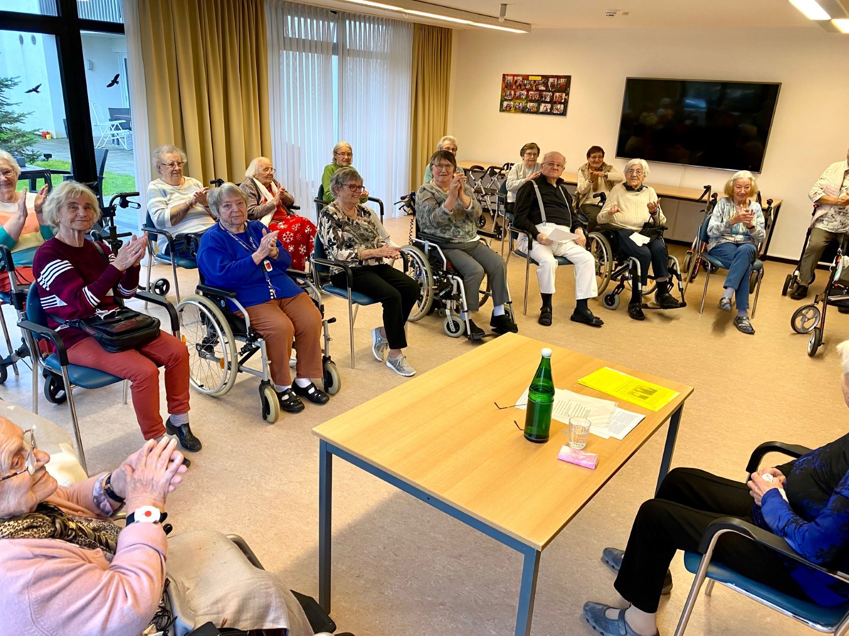 Die Bewohner haben den Vortrag sehr genossen und applaudieren begeistert.