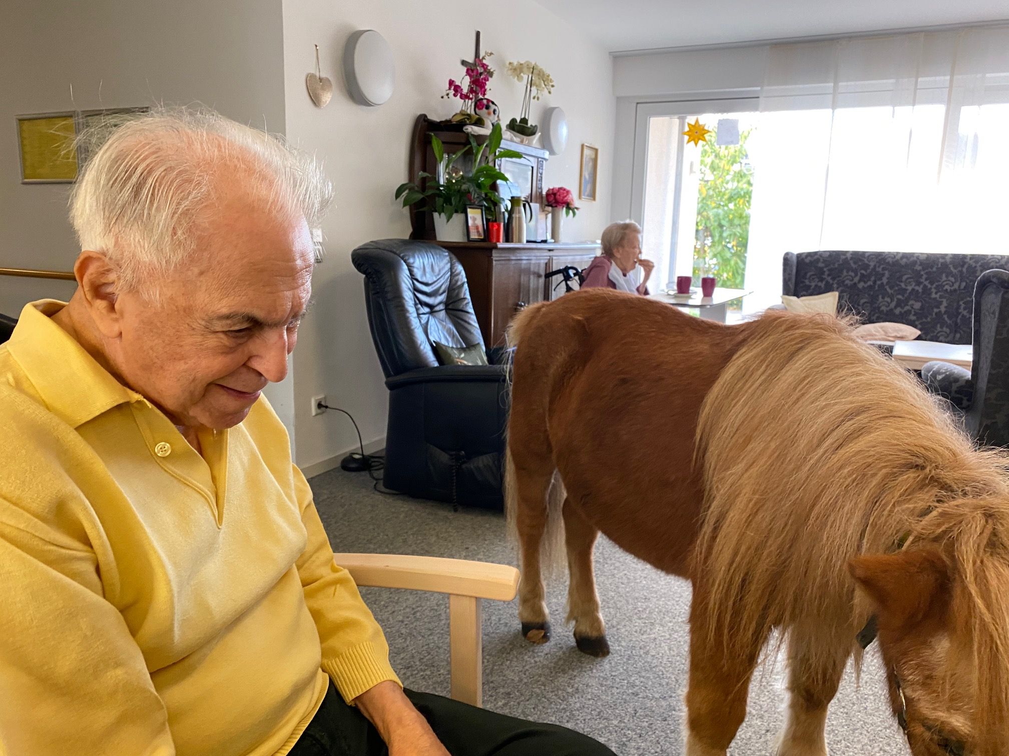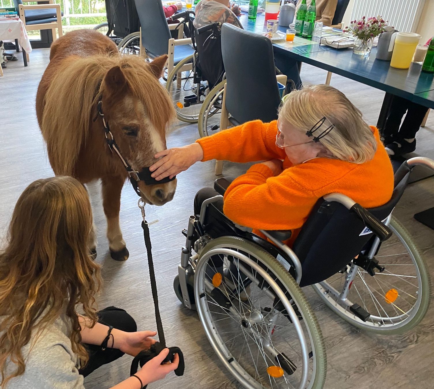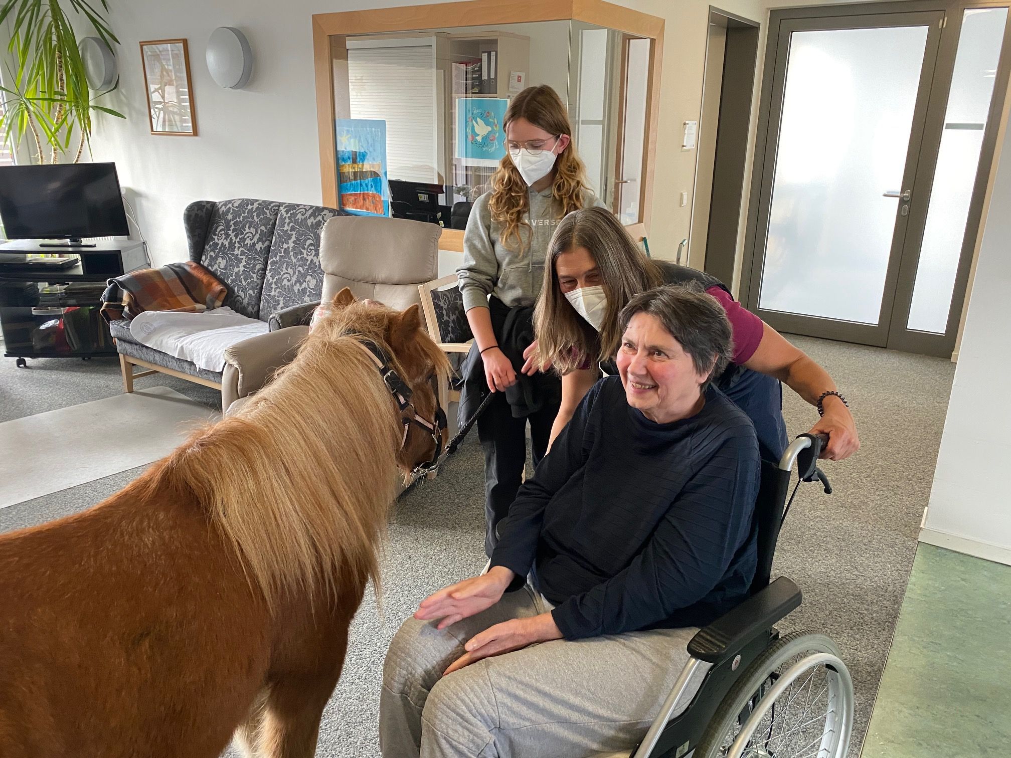 Eines der Einstellpferde gehört Sylvia Saggese, der Einrichtungsleiterin vom Franziskus-Haus in Aegiedenberg. Über sie entstand der Kontakt zu Gudrun Sautter, die mit Felix auch bereits im Franziskus-Haus ganz viel Freude in den Alltag der Bewohner brachte.
