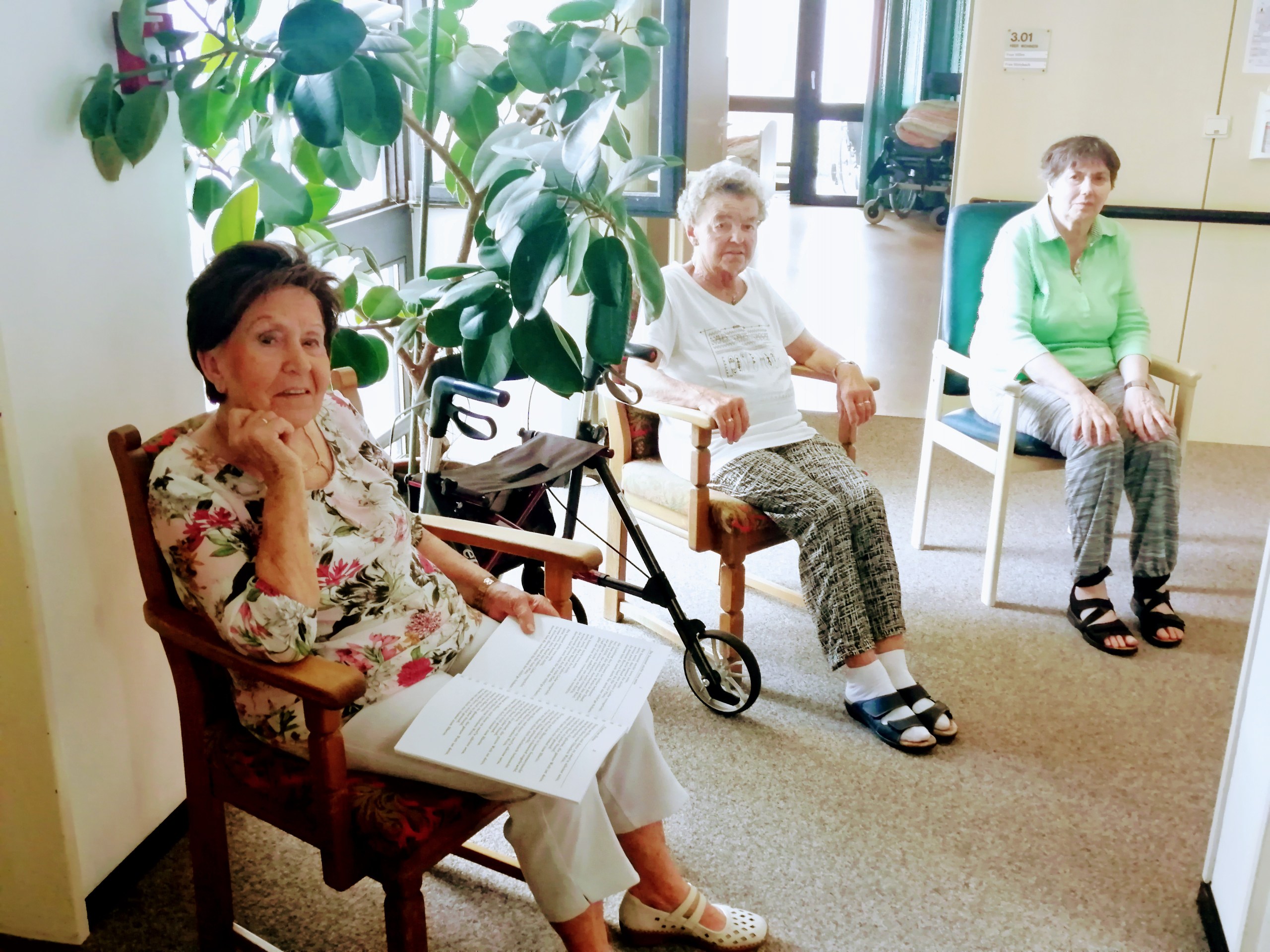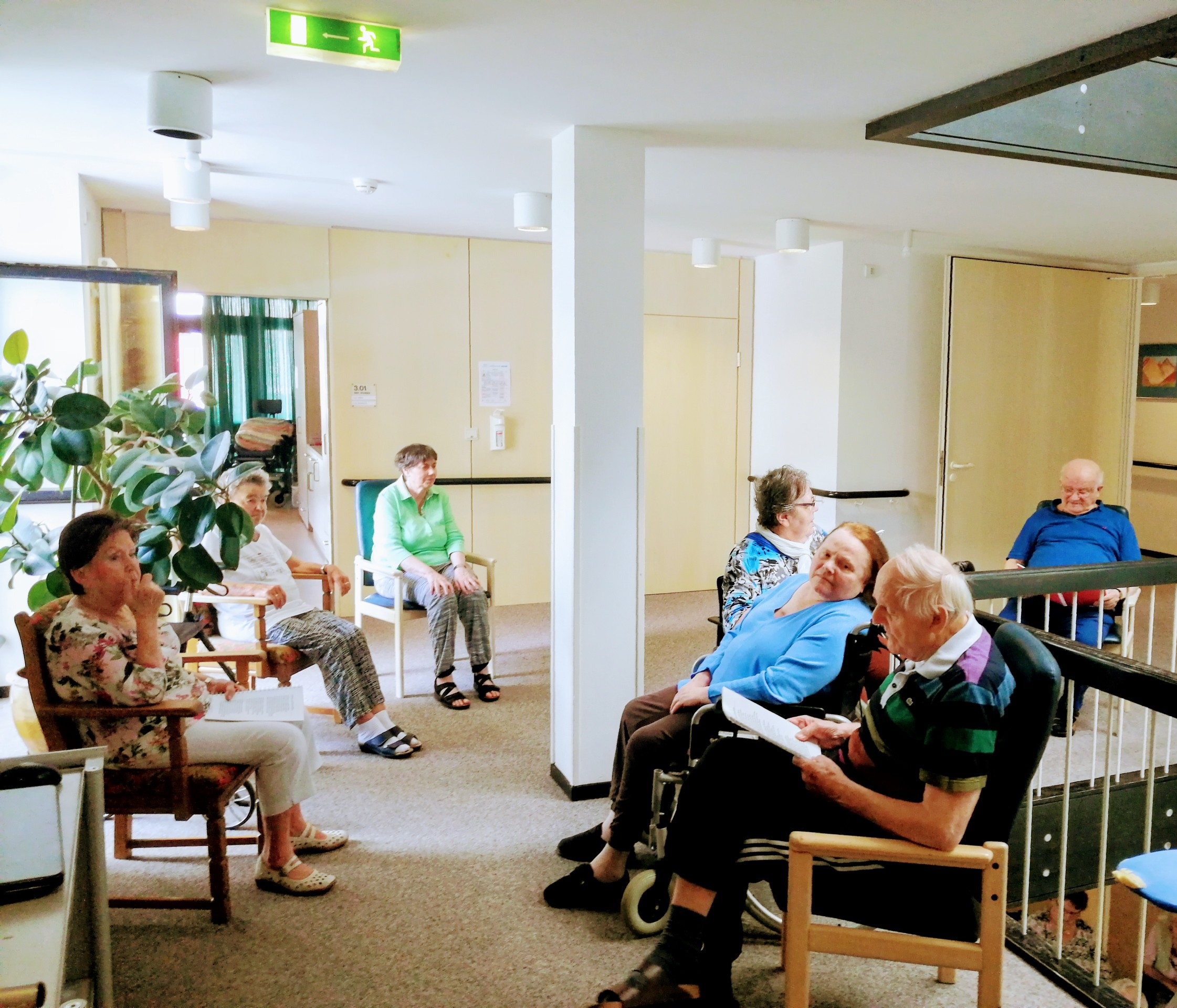 Einige Bewohner hatten ihre Zimmertüren geöffnet, um dem Gesang und der schönen Musik zu lauschen.