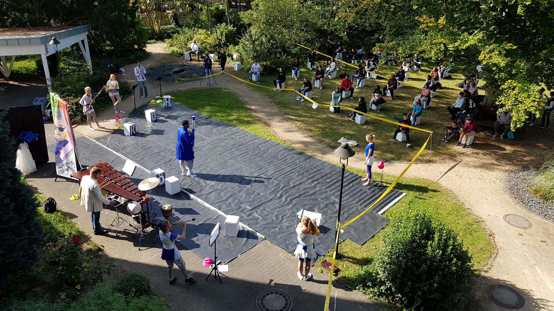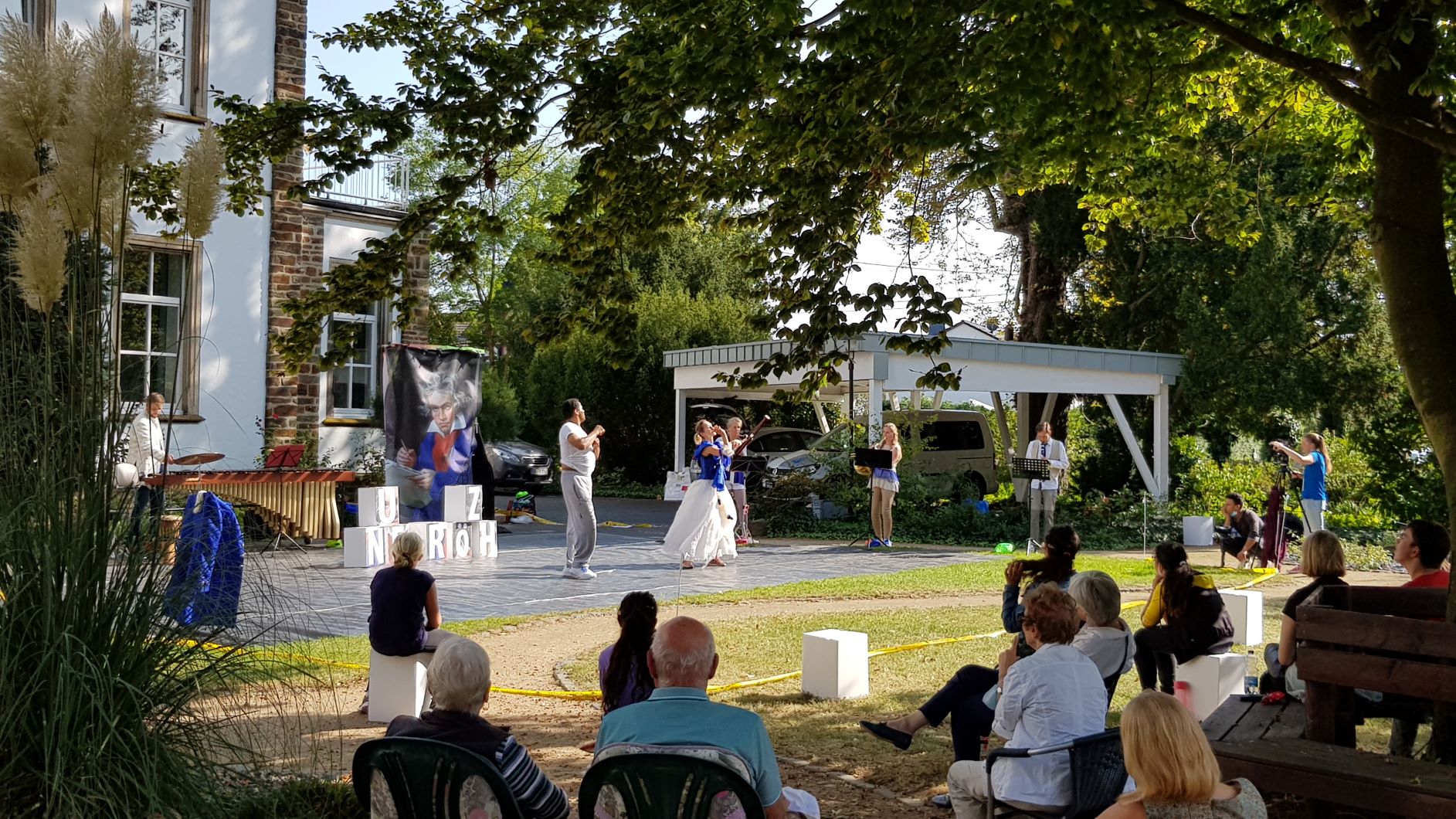 Der Verein Mutathe e.V. aus Bad Honnef veranstaltet am 21. September ein Tanztheater „Spurensuche zu Mr. B“ zum Thema Kommunikation für Jugendliche von 10-15 Jahren. Es fanden zwei Vorstellungen statt. Die Nachmittagsvorstellung konnten unsere Bewohner bei strahlendem Sonnenschein genießen. Mit dem Ensemble QuintOlé, bestehend aus 5 BläserInnen, einem Schlagzeug-Multitalent und dem Tanzduo Lisa Graff/Othello Johns tanzte die Geschichte durch Gestern und Heute, immer auf den Spuren von Mr.B., der sich in altem oder neuem Gewand zu erkennen gibt. Manchmal klang das wie ein HipHop, manchmal entstand aber auch etwas ganz verrücktes Neues. Schülern der Stefan-Andres-Realschule Unkel wurde so die Welt von Beethoven ein wenig nähergebracht. Ein Projekt von dem auch unsere Bewohner profitierten.