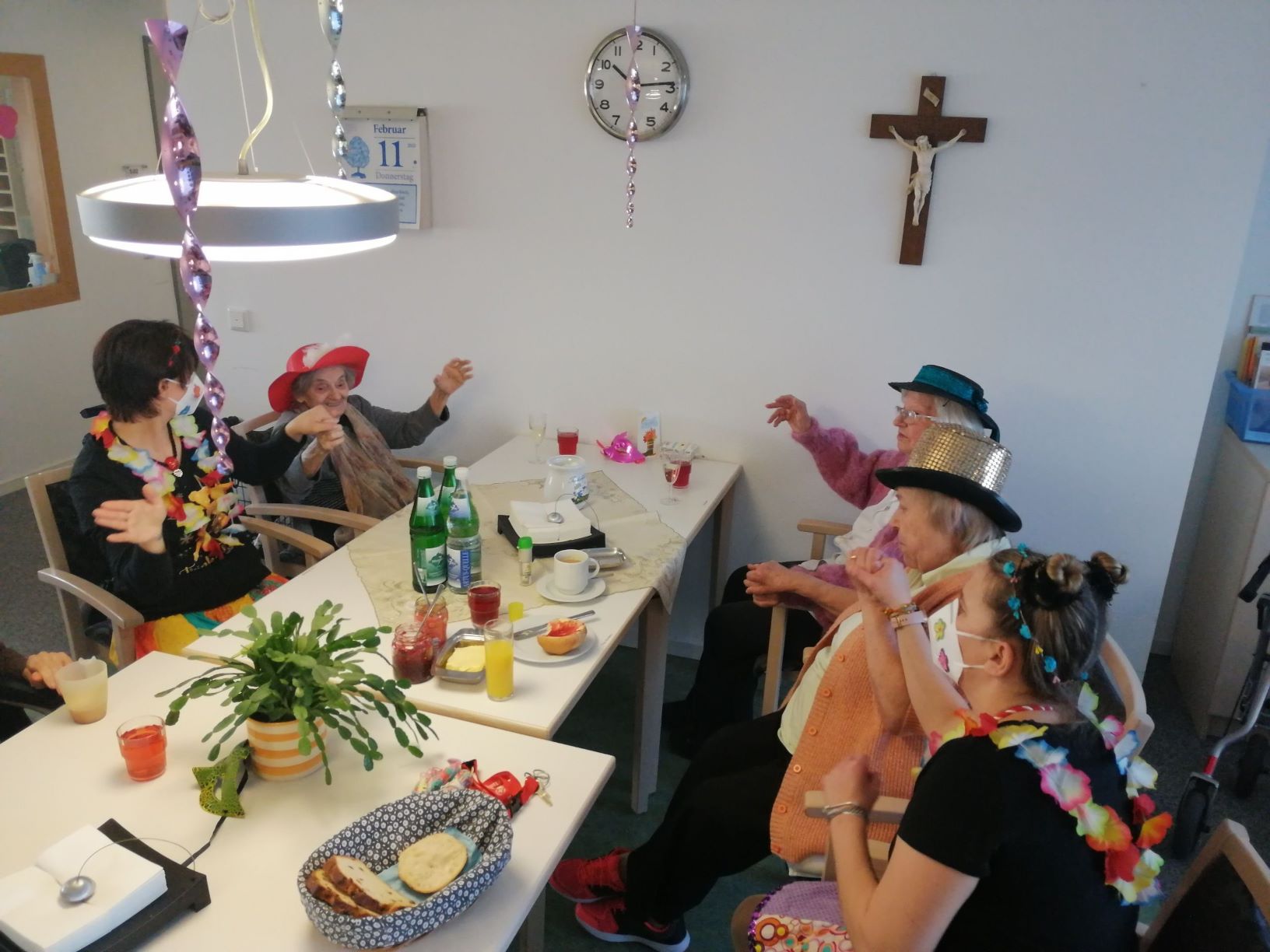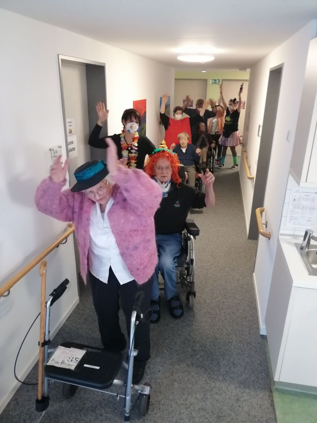 „Corona Alaaf“- wir haben uns Karneval nicht vom allgegenwärtigen Virus vermasseln lassen, stattdessen haben wir uns einfach „angepasst“. Was die Mutationen können, können wir schon lange! Also haben wir unseren Getränkewagen schön dekoriert, natürlich standesgemäß in rut-wiess. Ausgestattet mit allerlei leckeren Getränken mit und ohne Alkohol, mit Musik und Box zogen wir kostümiert durch alle Wohnbereiche und Hausgemeinschaften, um auch dieses Jahr Wieverfastelovend zo fiere. Mit Abstand und Maske, aber trotzdem mit ganz viel Stimmung waren alle mit Feuer und Flamme dabei. Sogar kostümiert hatten sich einige. Wir Rheinländer können immer schunkeln - ob allein oder in Gruppe - so haben wir dieses Jahr das Beste draus gemacht und es gab viele frohe Gesichter. So anders wie unser Karnevalsauftakt in 2021 auch war, genossen haben wir es allemal!