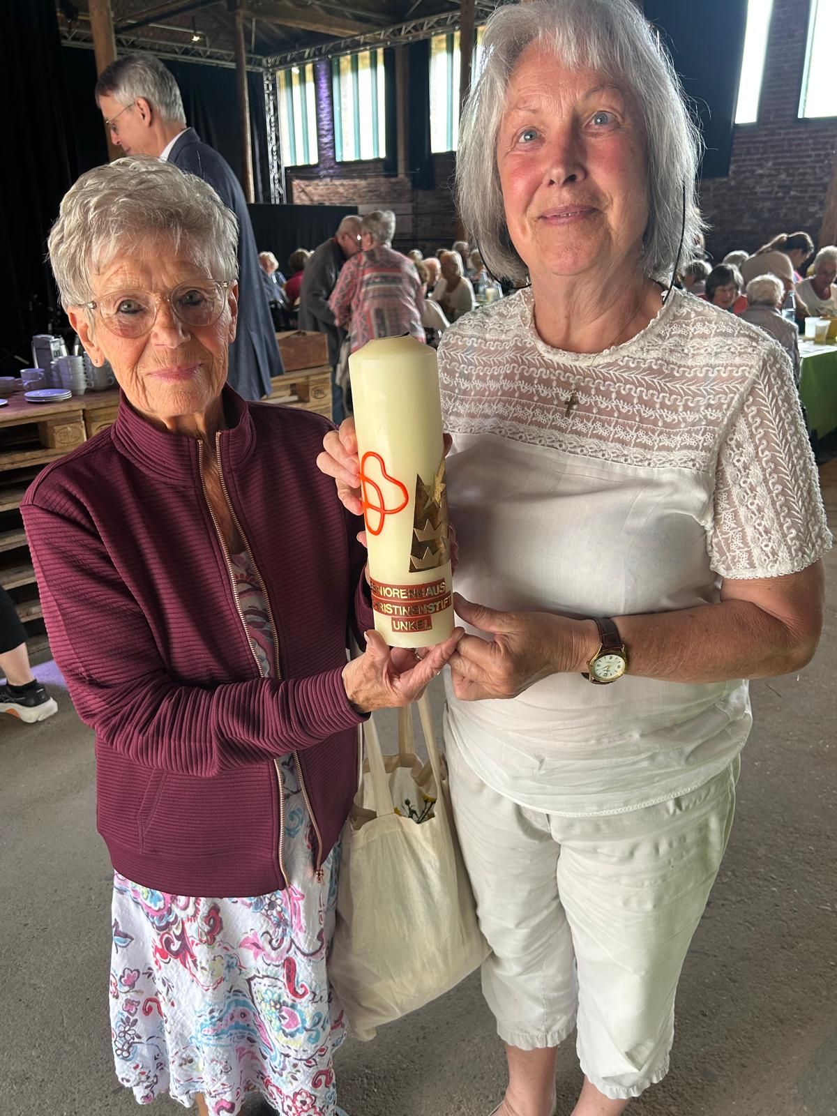 (v.l.) Gudrun Küpper und Monika Becker halten stolz die Sternwallfahrtskerze.