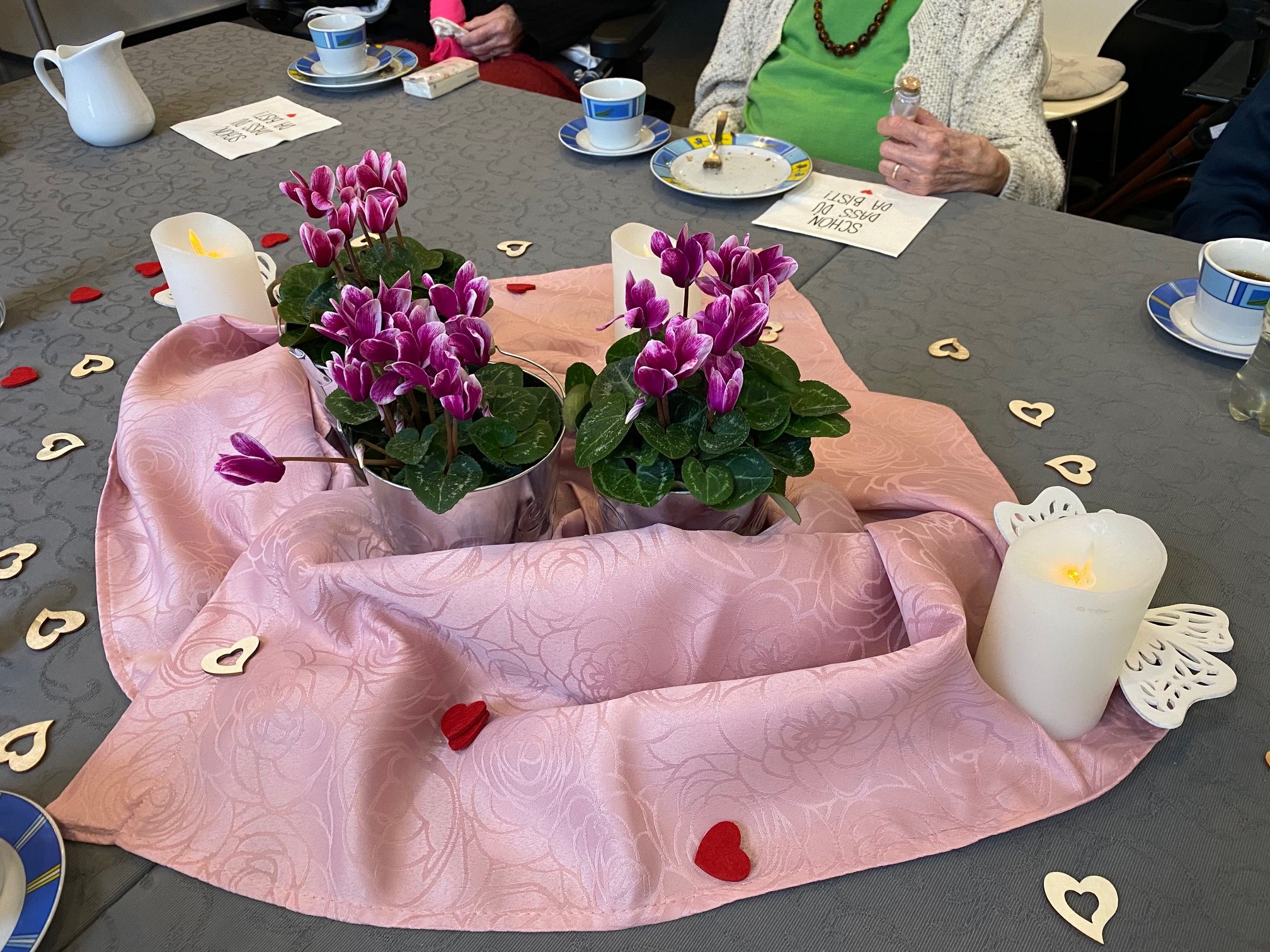 Unsere Seelsorgerin Sabine Rohden bereitet die Bibelstunden immer mit extrem viel Mühe und Herzblut vor. Es gibt stets selbstgebackenen Kuchen, Kaffee und eine sehr schöne Tischdekoration, die passend zum Thema gestaltet ist.