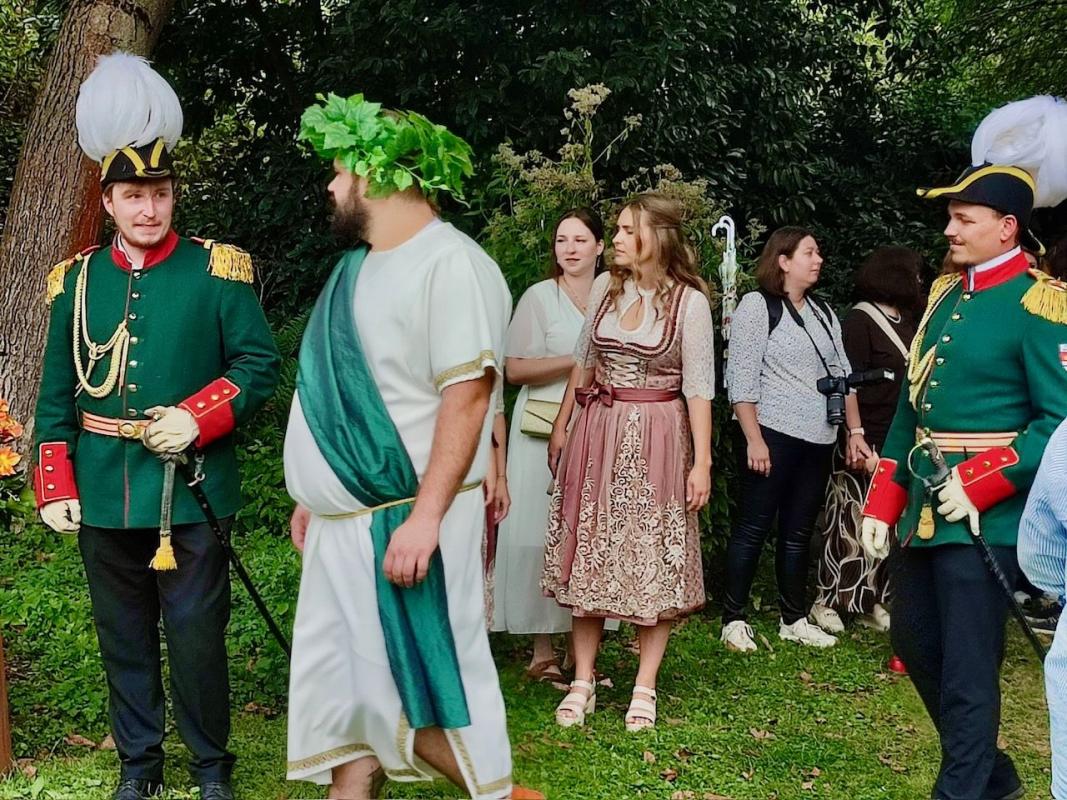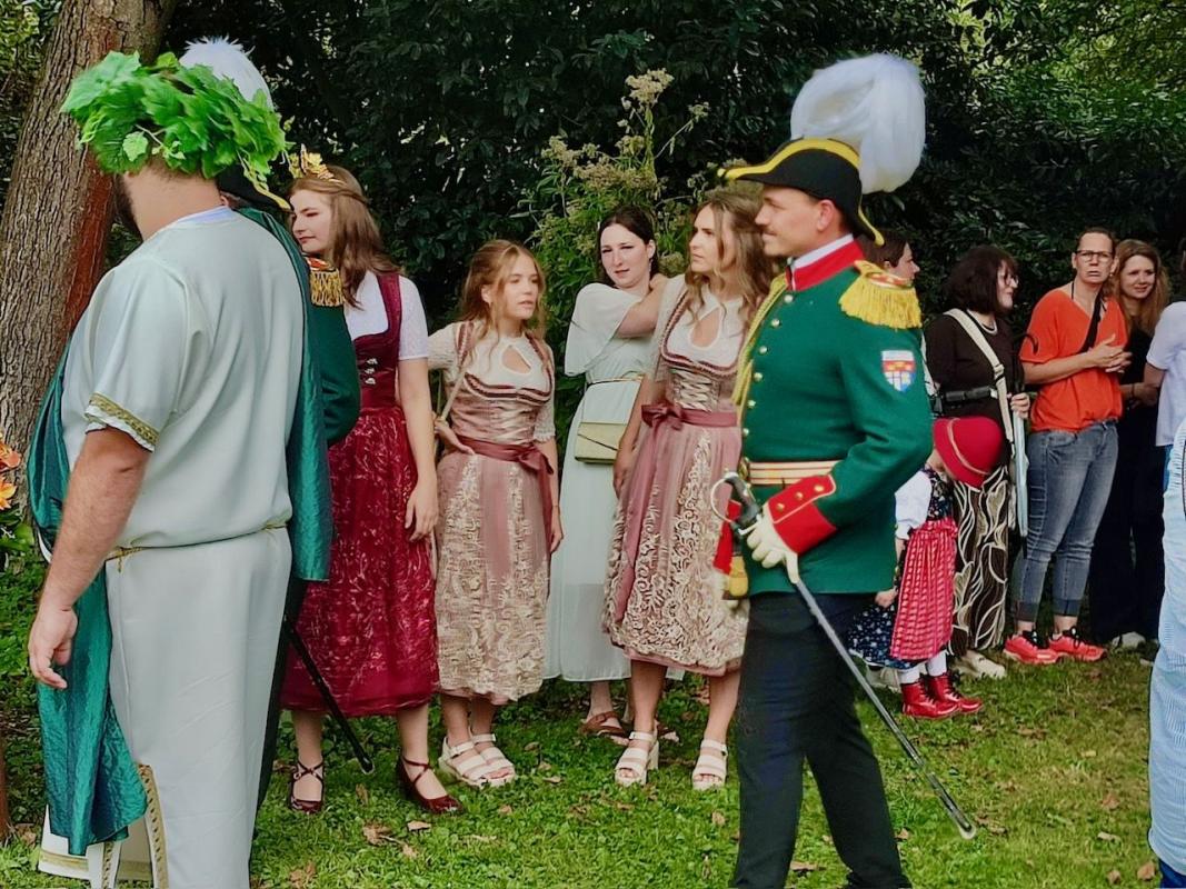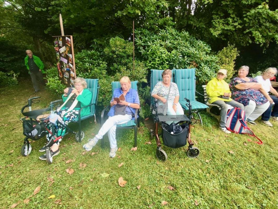 Ein Ausflug ermöglichte es mehreren Bewohnerinnen und Bewohnern, die Blütenpracht vor Ort zu genießen. Dabei stellten sich ihnen auch die Erpeler Weinkönigin, Lea Warnke, die Weinprinzessinnen Lilian Warnke und Nina Freund sowie Bacchus Dominik Schwager vor.