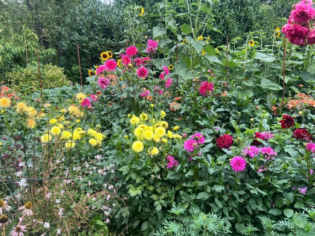 Dieser Garten ist ein Traum von zig verschiedenen Dahlienarten, die eigens für die Verzierung des Erpeler Festwagens zum Weinfest in Erpel gezüchtet und gehegt und gepflegt werden. Mit viel Liebe, Herzblut und Zeit sorgt das Ehepaar für ein prächtiges Blütenmeer.
