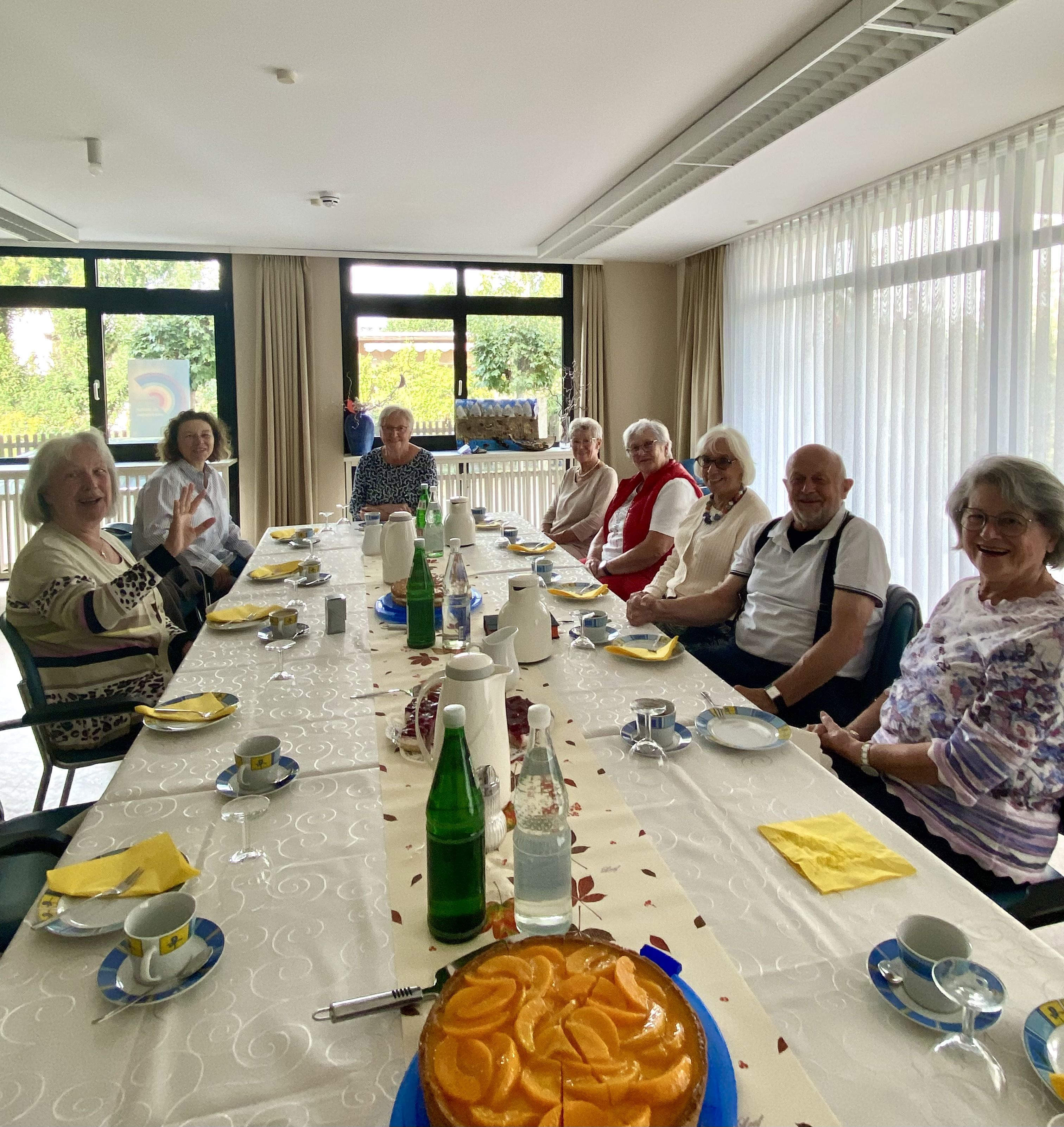 In geselliger Runde genießen wir den köstlichen Kuchen und geben uns Raum für den gegenseitigen Austausch: Monika Becker, Ira Denkhaus, Sr. Rosita, Gudrun Küpper, Margit Weber, Christel Bühne, Michael Brauer und Edda Löhrke.