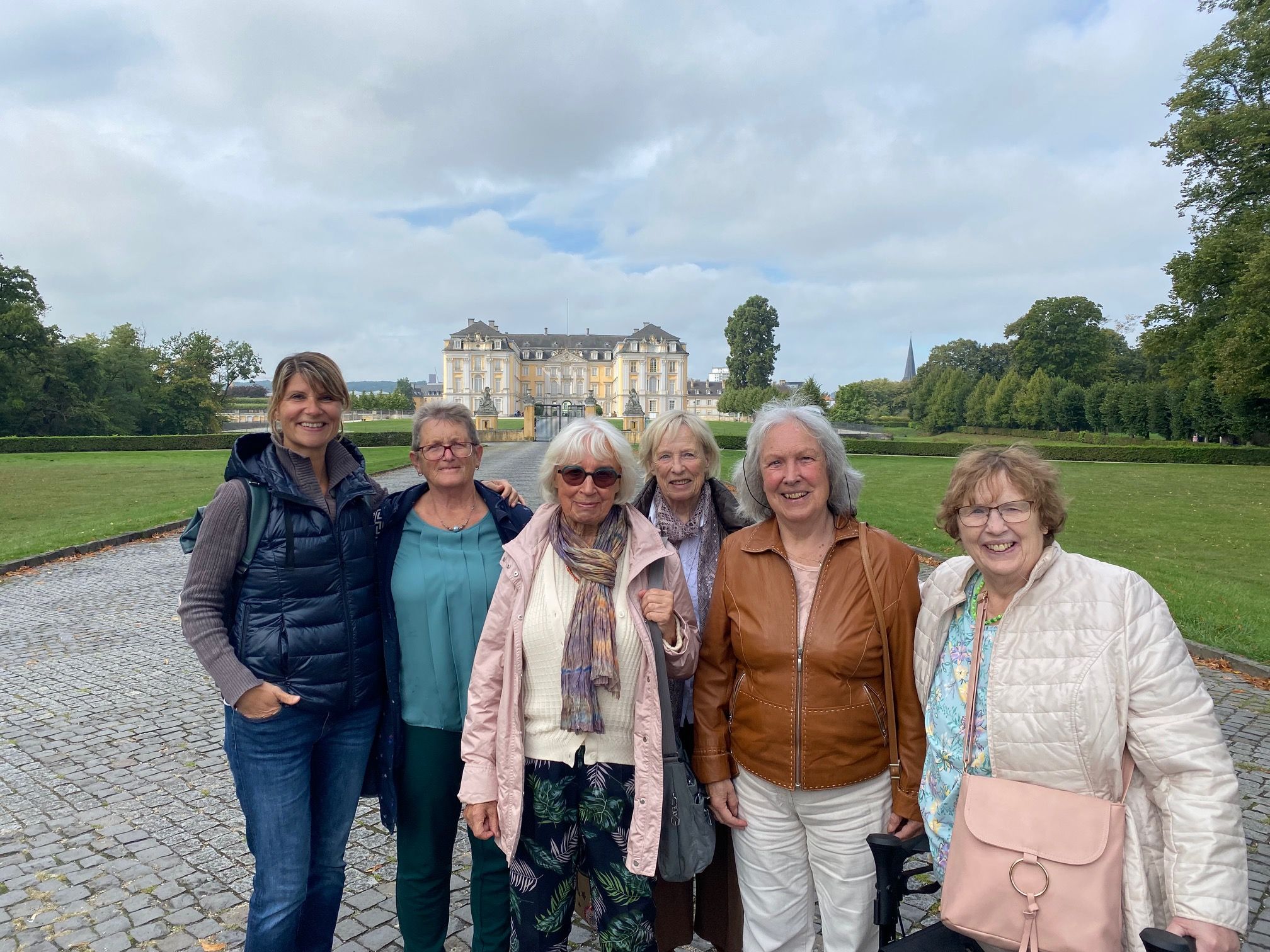 (v.l.n.r.) Mia Kuhsel, Fine Schmitz, Christel Bühne, Brigitte Schmitt, Monika Becker und Irmgard Königsmark im schönen Schlosspark.