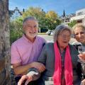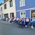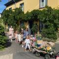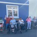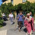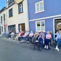 Direkt vorbei am Christinenstift schlängelte sich der lange Umzug. Hier grüßen die neuen Weinmajestäten, Weinkönigin Hanna und die Weinprinzessinnen Lena und Leonie unsere am Straßenrand sitzenden Bewohner.