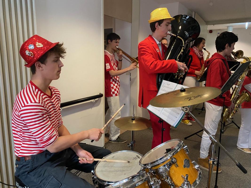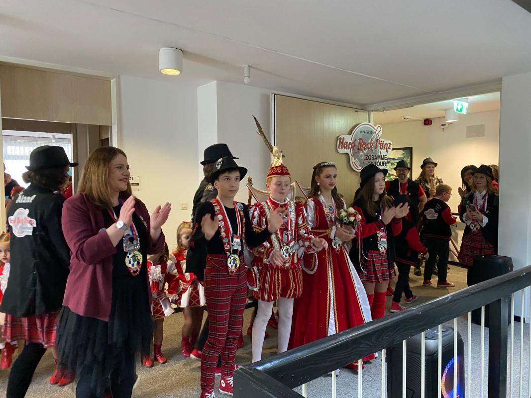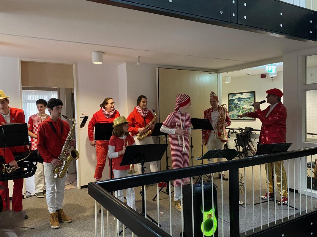 Die Jugendband der Feuerwehr in Leubsdorf „Feier-Brass“ spielte mit viel Feuer und Begeisterung Karnevalslieder und andere bekannte Hits in Brass-Manier. Die jecke Menge war begeistert!