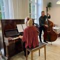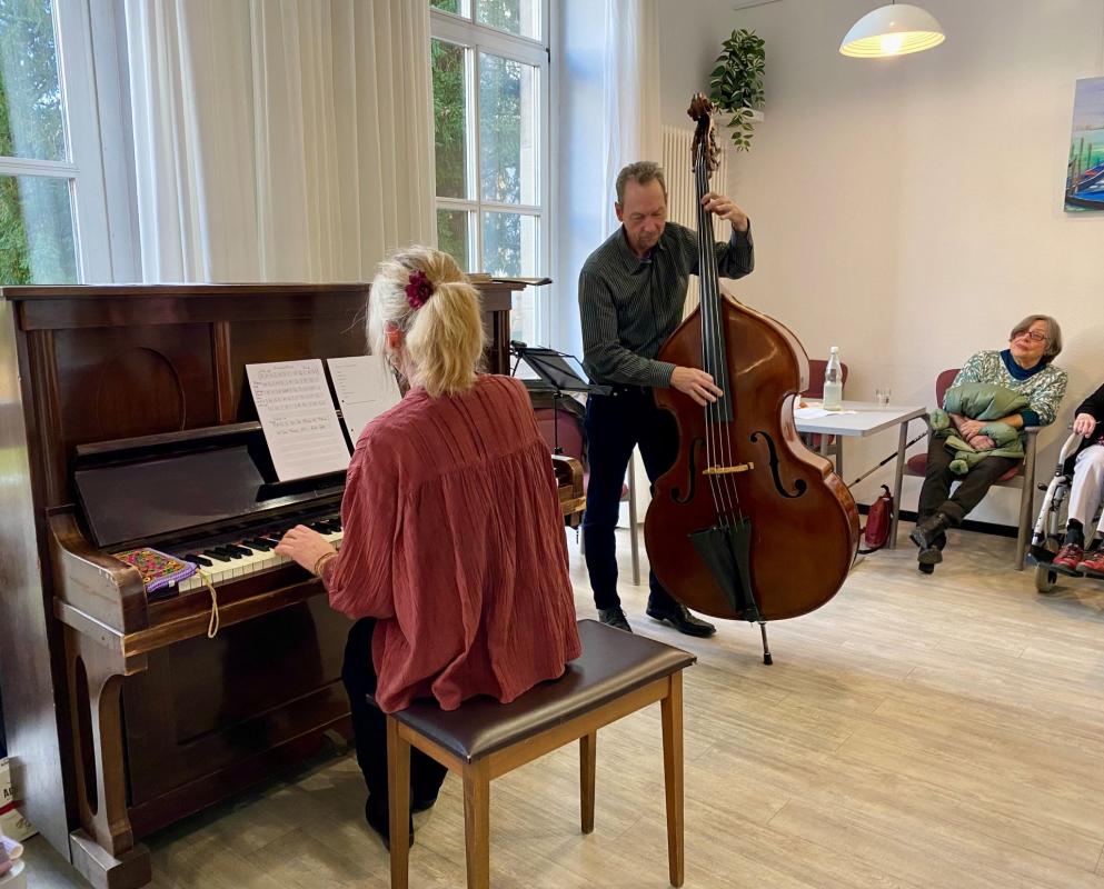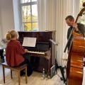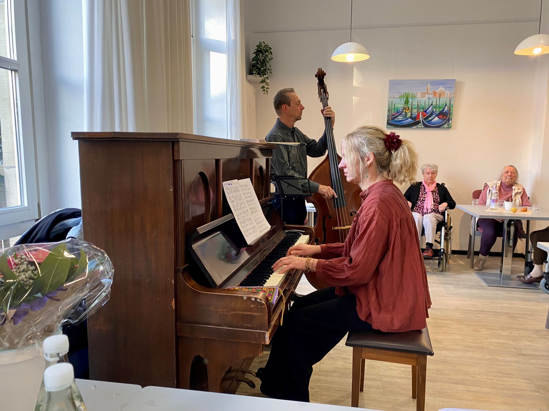 Das heutige Konzert stand unter dem Titel „Der unbesiegbare Sommer“. Stephanie Troscheit (Klavier) und Fritz Roppel (Kontrabass) begeisterten das Publikum sowohl mit Eigenkompositionen als auch mit bekannten Stücken im melodiösen Jazz. Die beiden Künstler sind sehr aktive Berufsmusiker. Zum einen in jeweils eigenen Projekten, zum anderen häufig als „Stephanie Troscheit Trio“, zu dem noch ein Schlagzeuger gehört. Die Eigenkompositionen stammen allesamt aus der Feder der Pianistin Troscheit. Es war ein schöner Nachmittag, der uns alle verzauberte.