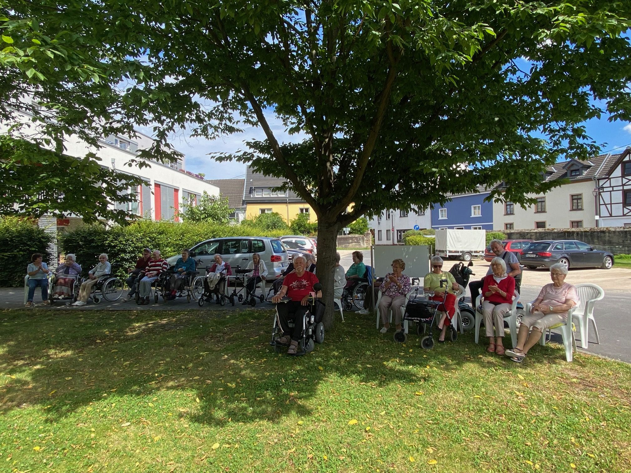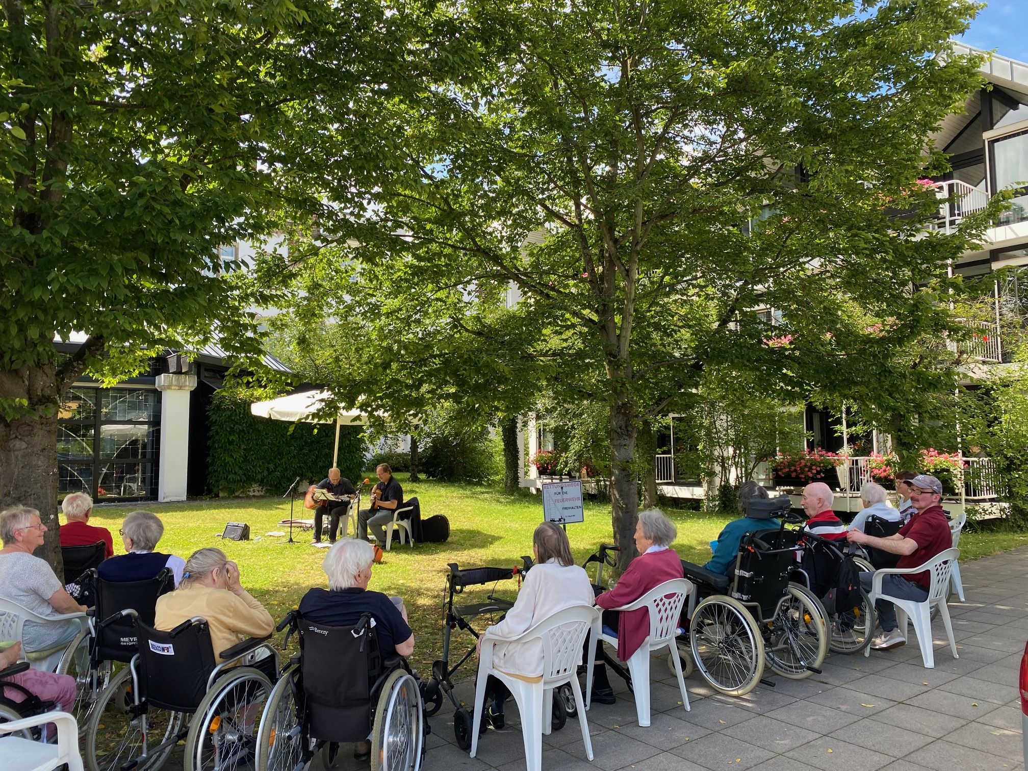 Zahlreich erschienen unsere Bewohner im Garten, um dem Konzert beizuwohnen.