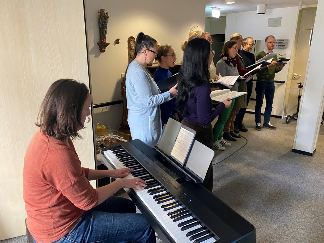 Mit großer Begeisterung haben die SängerInnen unter der Leitung von Beate Eggenstein (Chorleiterin, Piano) Weihnachtslieder dargeboten.