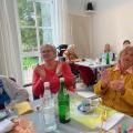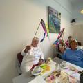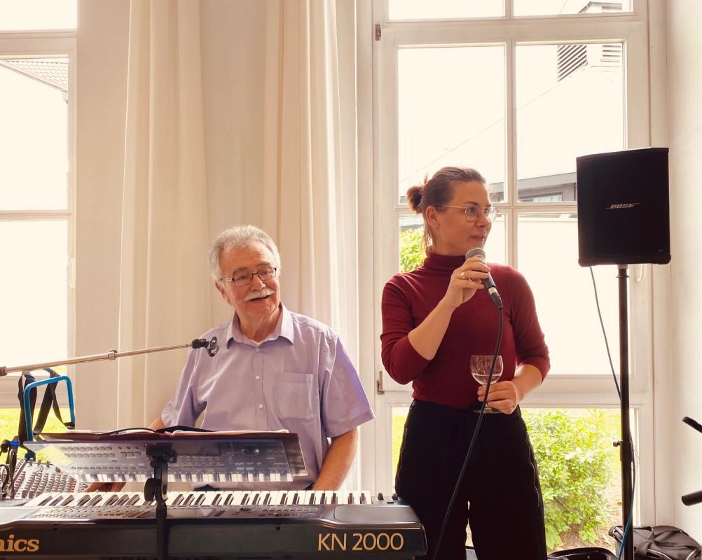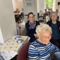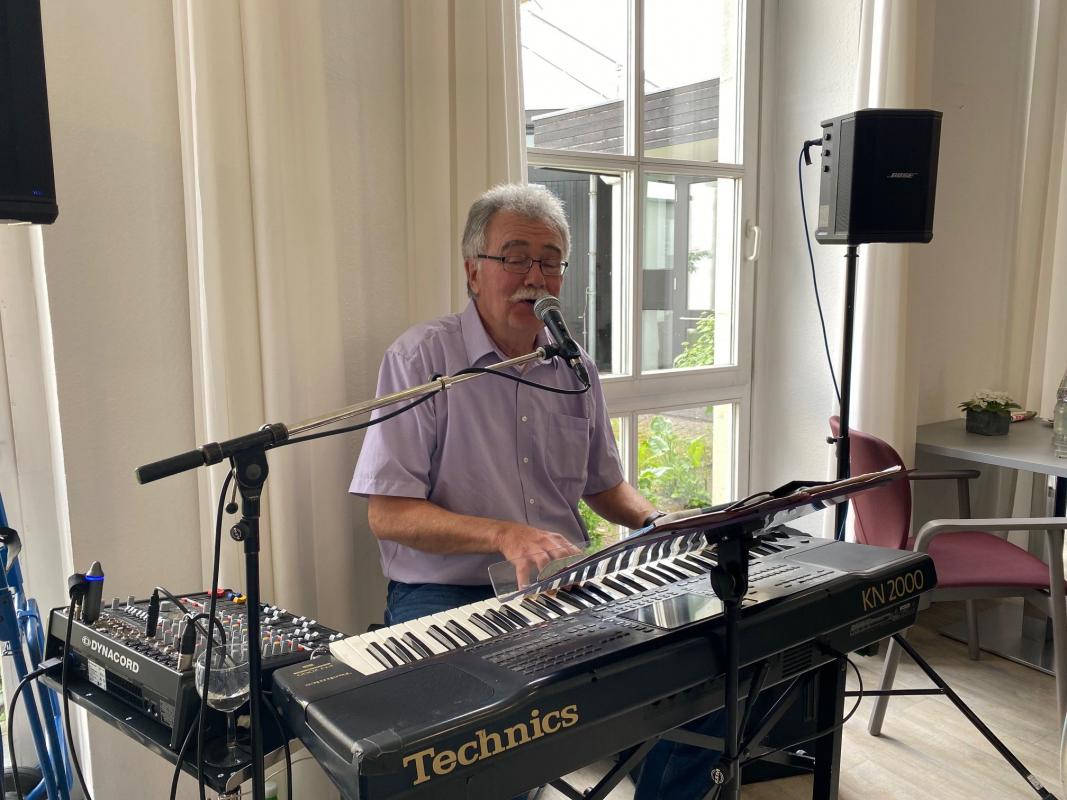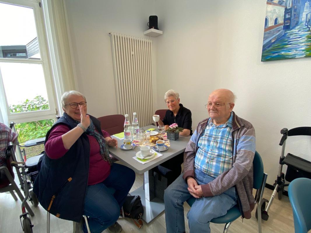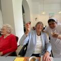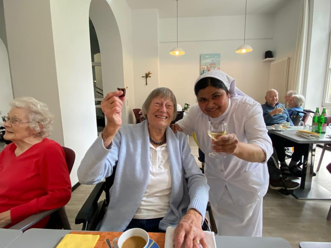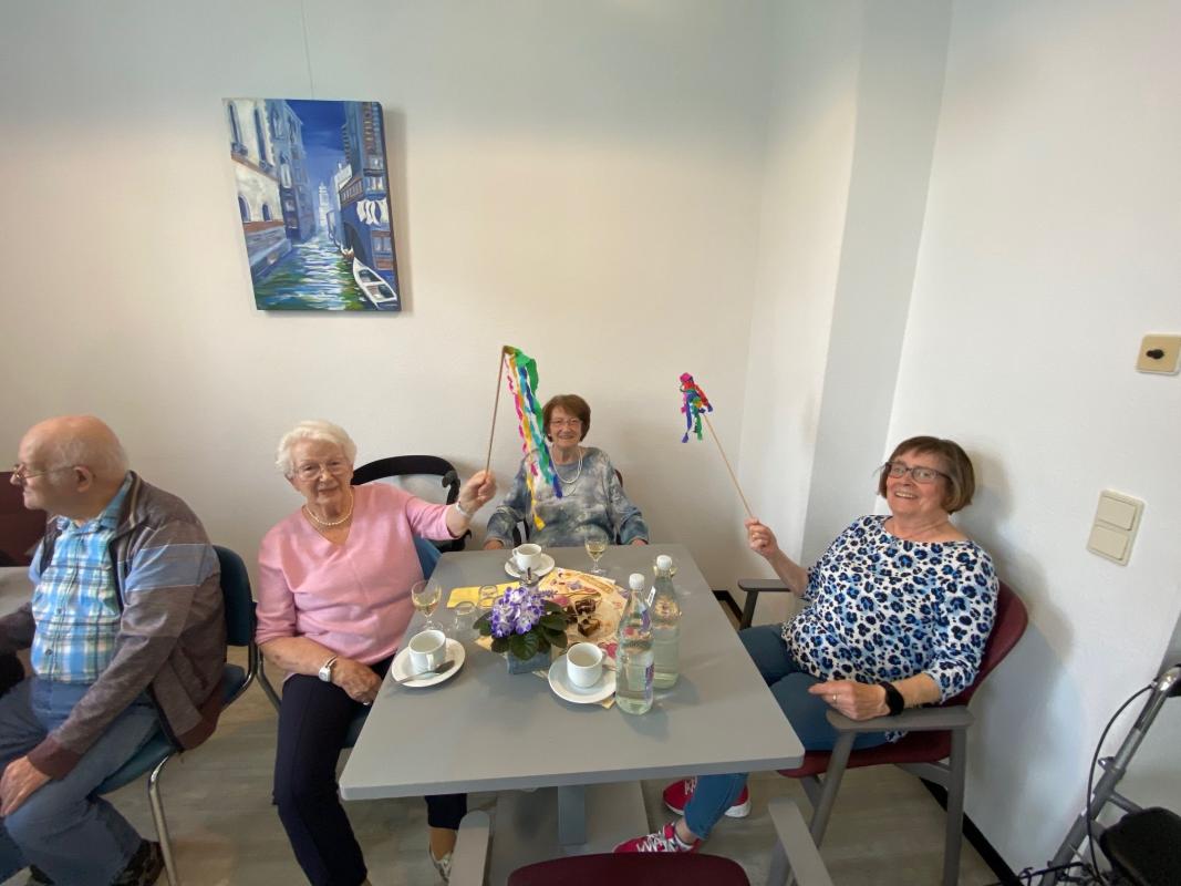 „Darf ich bitten...?“ Begeistert nahmen Bewohnerinnen und Bewohner, deren Angehörige und Ehrenamtlerinnen an unserem Maifest teil. Stefan Pischl entführte uns in die Welt der sehr alten Schlager und Mailieder. Erinnerungen an alte Zeiten wurden wach, es wurde mitgesungen und geschunkelt. Die Maibowle und der leckere Kuchen rundeten das Fest kulinarisch ab. Es war ein herrlicher und kurzweiliger Nachmittag.Hilde Schäfer und Renate Simon sind begeistert dabei.