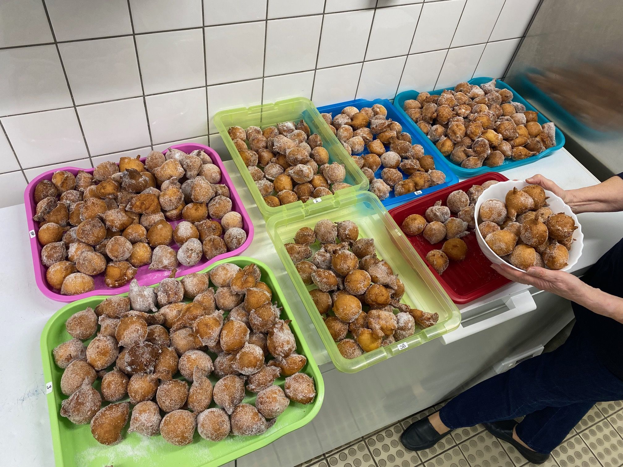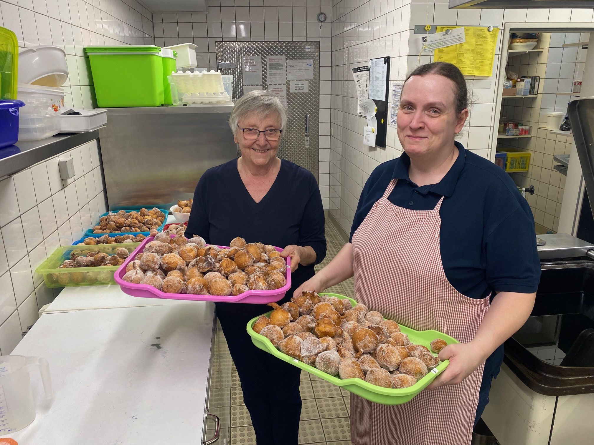 Sr. Rosita hält unsere alljährliche Tradition aufrecht, am Rosenmontag frische Mutzen zu backen. Dieses Mal hatte sie Unterstützung von Anne Hahn aus der Hauswirtschaft.