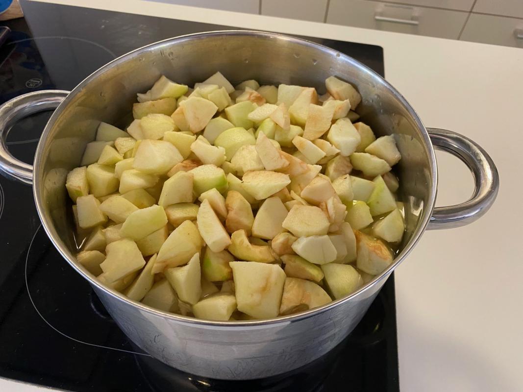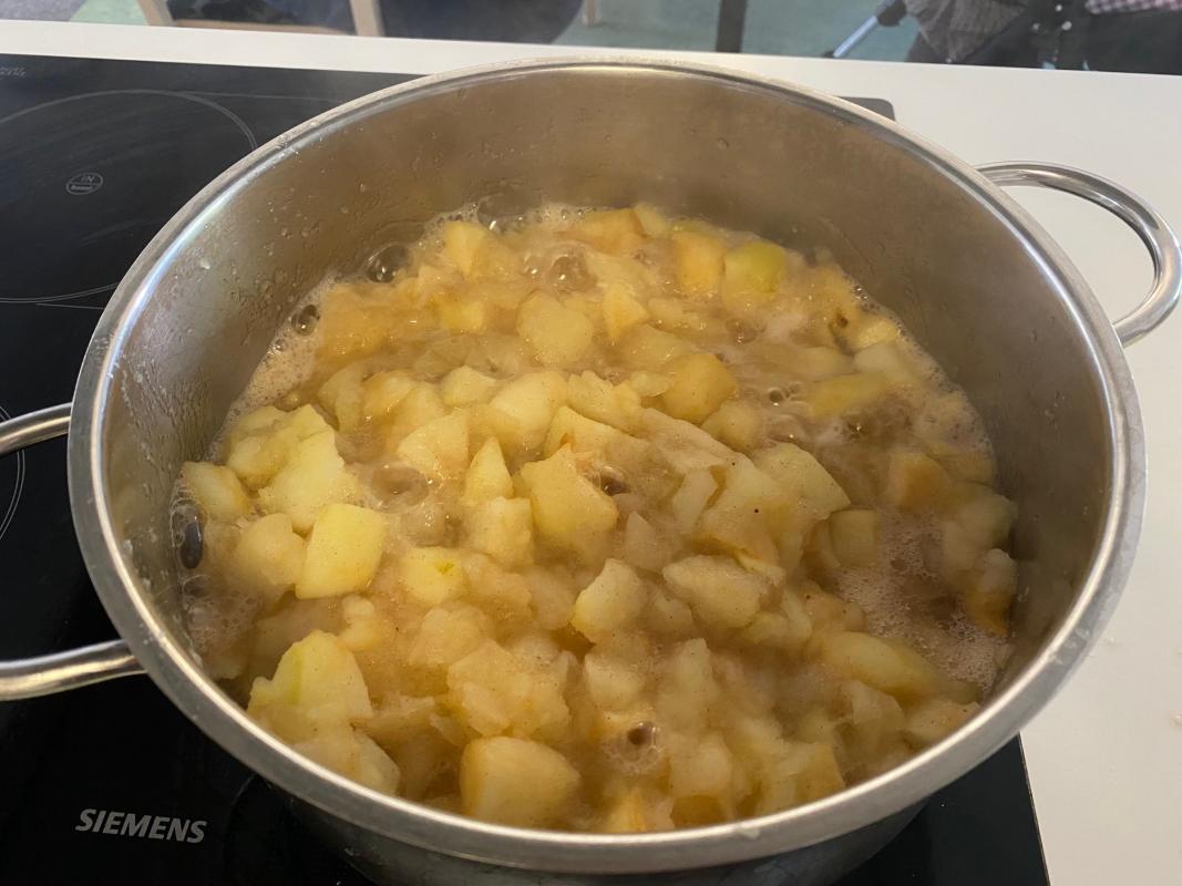 Das Resultat: Leckerer Apfelmus und wohlschmeckender Apfelkuchen. Dafür hat sich die Arbeit gelohnt!