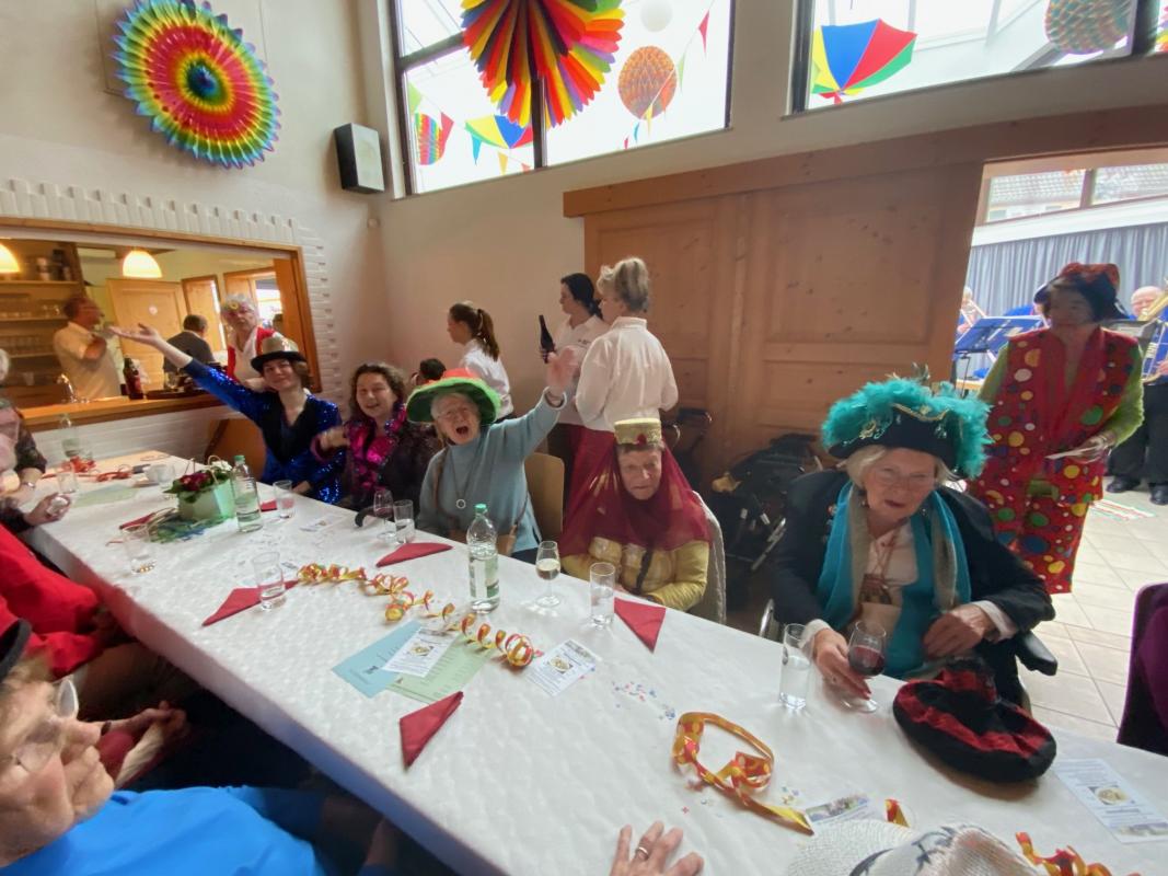 Die karnevalistische Veranstaltung war mit viel Liebe vorbereitet- alles war wunderbar bunt geschmückt, das Programm war abwechslungsreich und mitreißend, die Verköstigung wunderbar, die fleißigen HelferInnen sehr zuvorkommend. Wir genossen sowohl das Programm, als auch das Ambiente und die leckere Kuchen- und Getränkeauswahl.