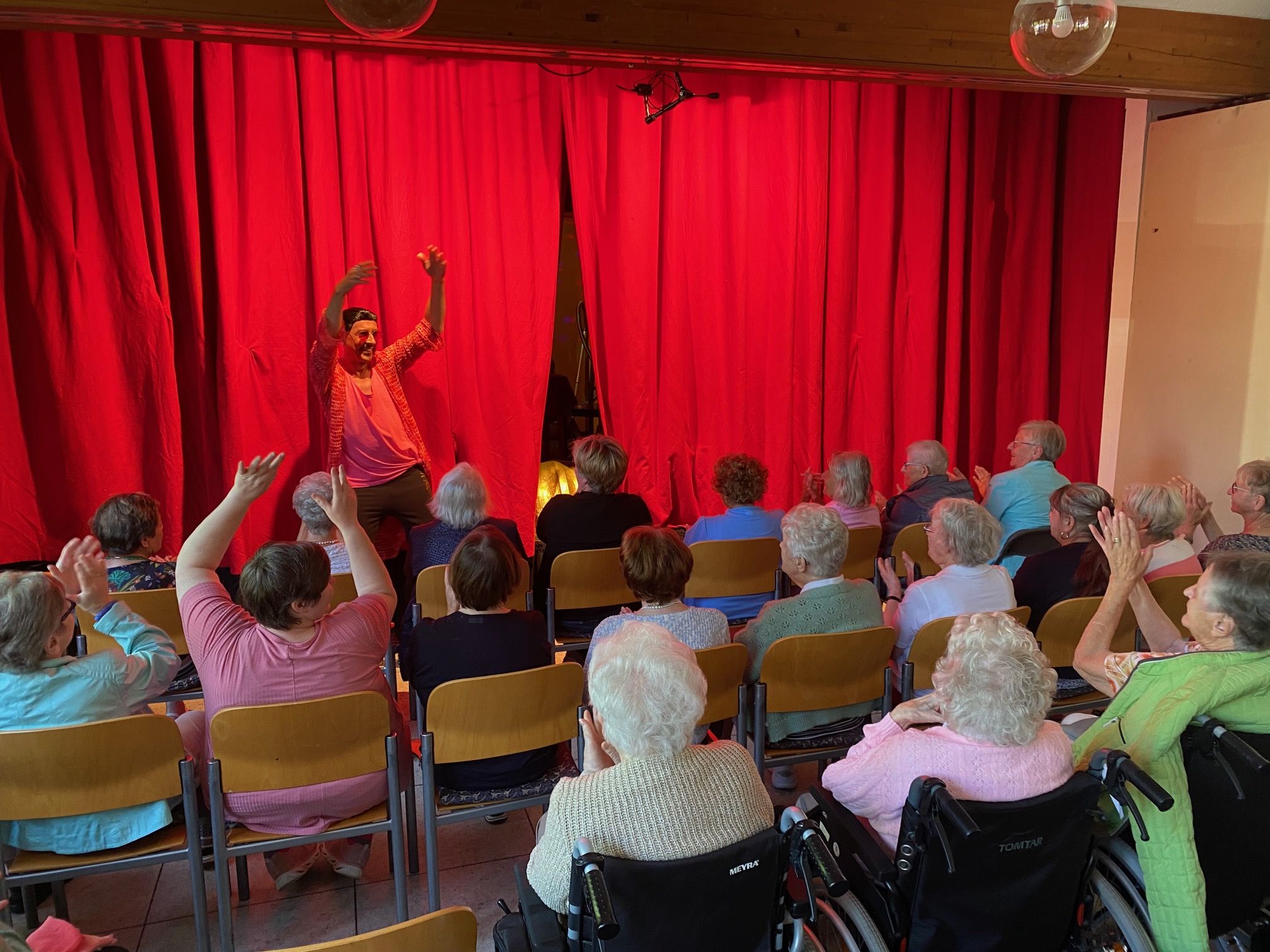 Mit einer großen Gruppe von Bewohnern, Ehrenamtlern, Angehörigen und Mitarbeitenden machten wir uns bei strahlendem Sonnenschein auf den Weg und durften einem herrlich hurmorvollen und kurzweiligen Stück beiwohnen.