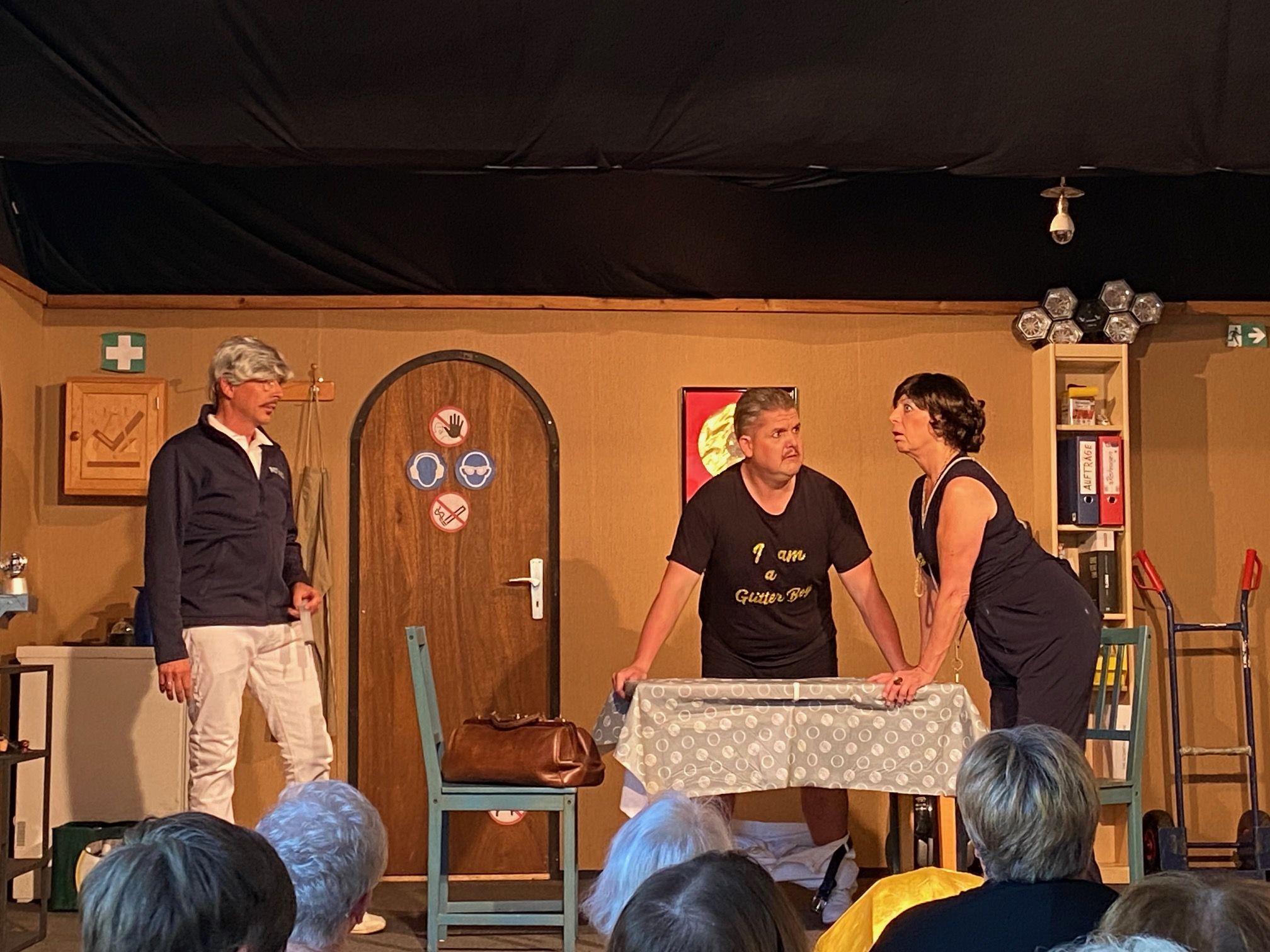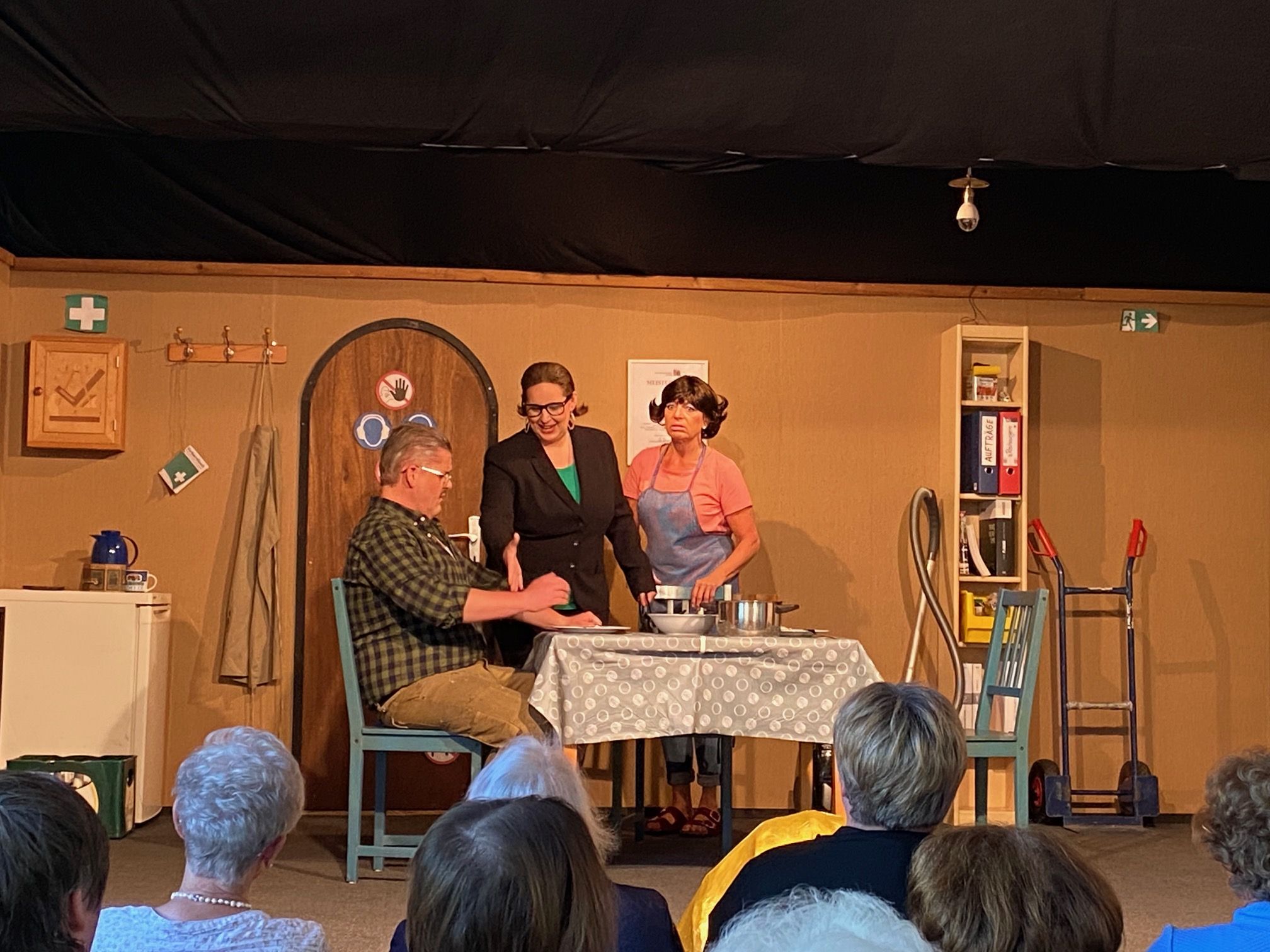 An dieser Stelle seien die vielen Mitwirkenden des diesjährigen Stückes genannt (einige von ihnen sind seit der Gründung des Theaterkreises vor 40 Jahren dabei!): Marita und Rudolf Zimmermann, Gisel Dommermuth, Andreas Kuhsel, Christopher Mohr, Frauke Tappel, Saskia Abel und Nadine Jammel aus der Schauspielriege. Anja Schreiner ist die Souffleuse und sie macht parallel dazu gemeinsam mit Judith Mohr die Maske. Engelbert Dommermuth sorgt dafür, dass die Technik einwandfrei funktioniert. Es stecken viel Herzblut und Arbeit hinter dem Theaterprojekt, und wir möchten uns sehr herzlich dafür bedanken, dass wir seit 15 Jahren eine Exklusivvorstellung bekommen, die sowohl zeitlich als auch vom Aufbau des Zuschauerraumes genau auf uns zugeschnitten ist.