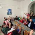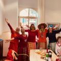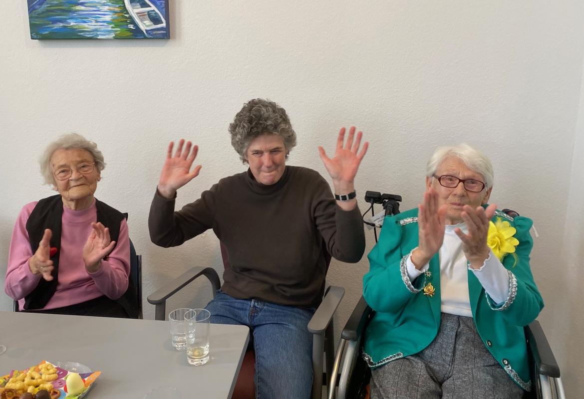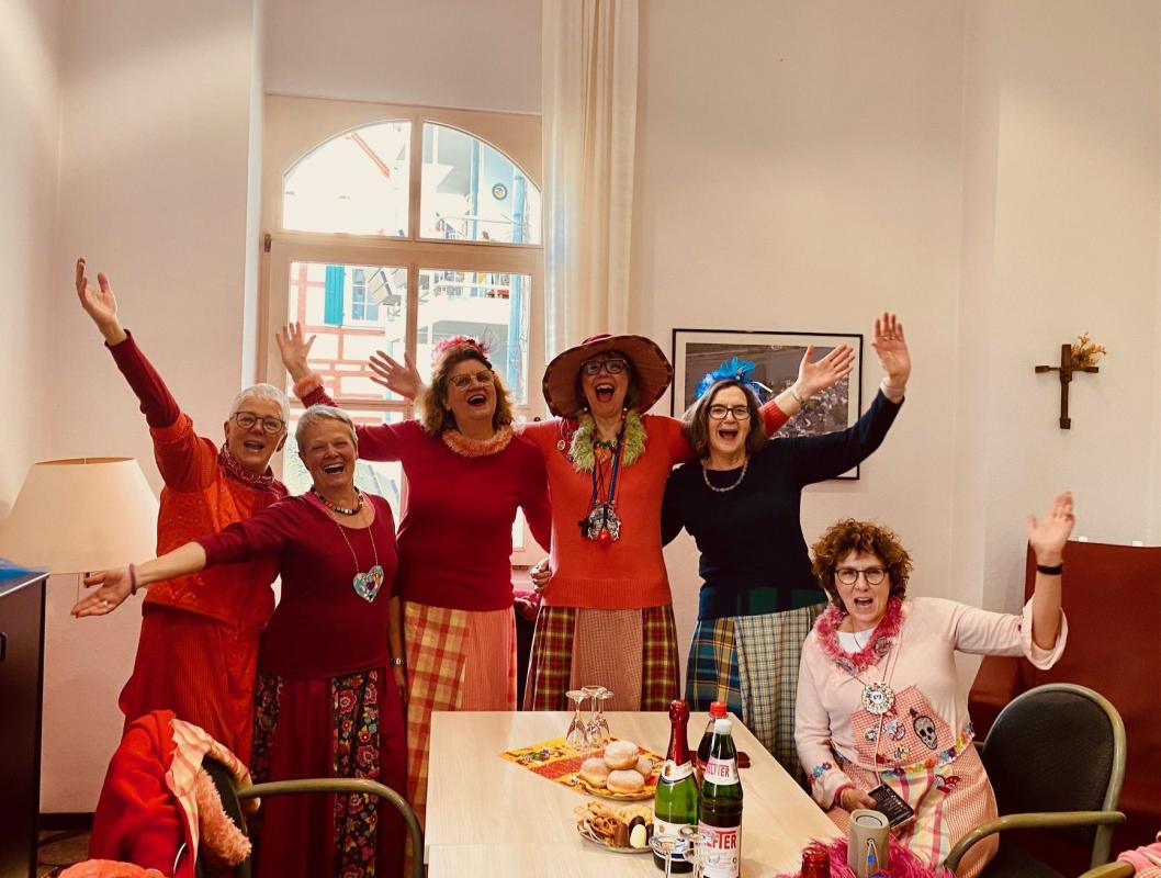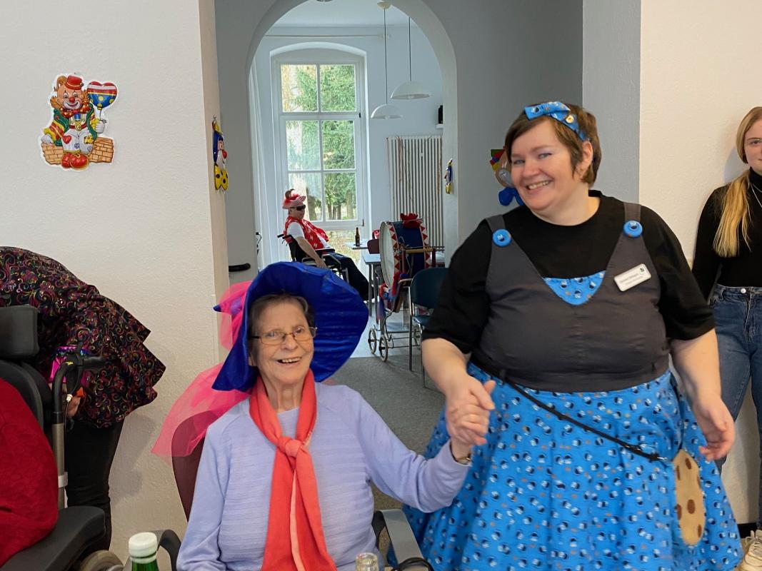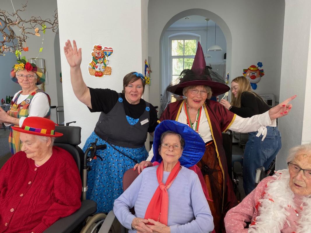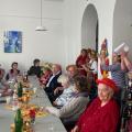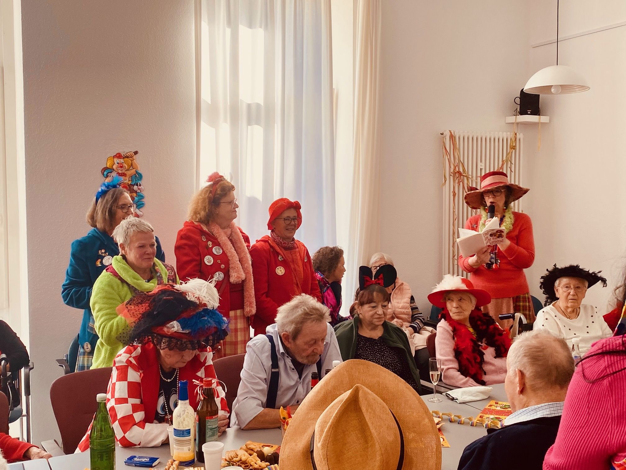 Wir feierten Weiberfastnacht bei toller Stimmung in unserem bunt geschmückten Speiseraum. An einer großen, bunten Tafel mit Dekoration sowie leckeren Knabbereien und Getränken saßen die Bewohner mit Ehrenamtlerinnen und Angehörigen und genossen die kölsche Musik und die Vorträge der Mitarbeiterinnen.