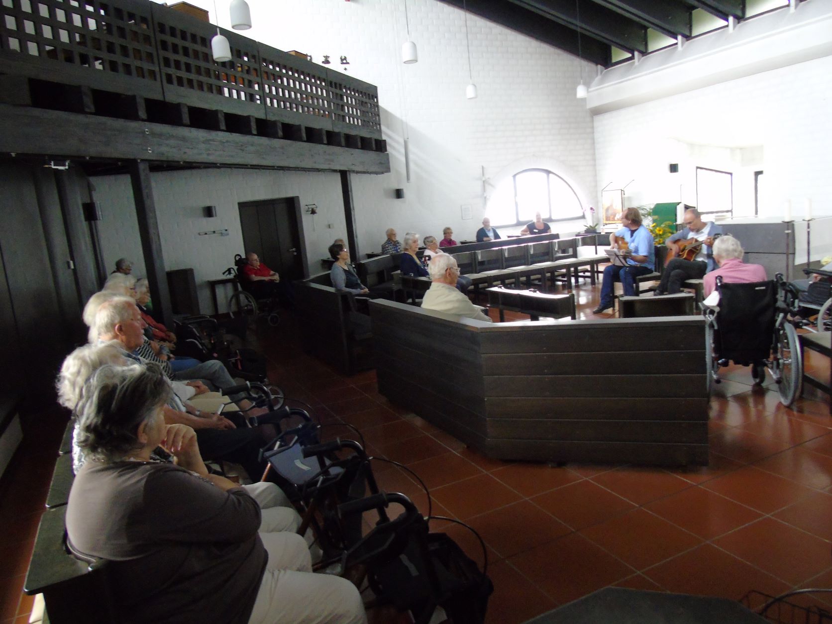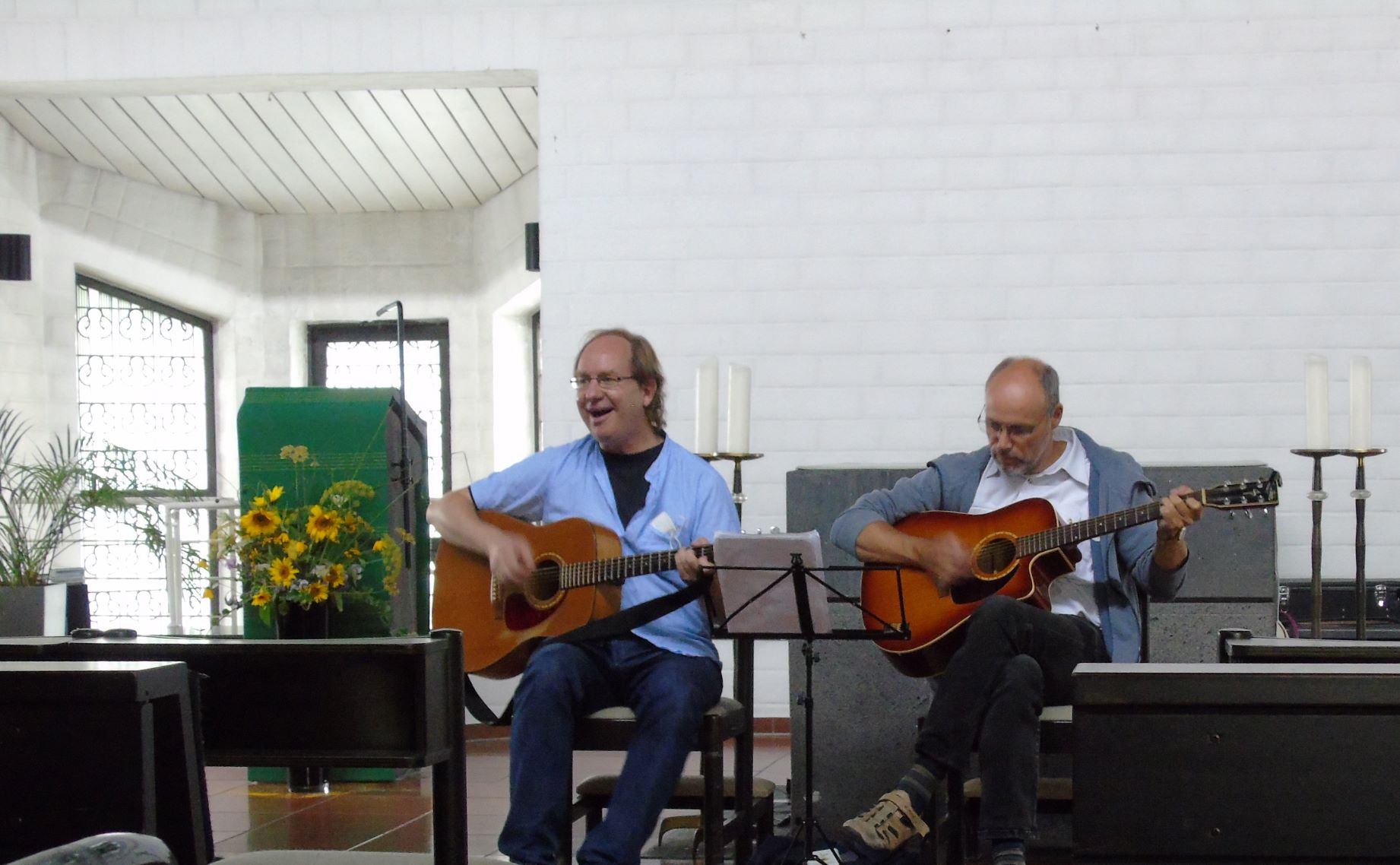 Nachdem das Duo „With 4 Hands“ bereits zu Beginn der Pandemie die Bewohner, Schwestern und Mitarbeiter vom Franziskus-Haus mit ihrem virtuellen Gitarrenspiel erfreuten, waren Guido Jackson-Willms und Norbert Feinendegen am 24. August erneut vor Ort. Da es an diesem Nachmittag leider in Strömen regnete, fand das Konzert in der Kapelle des Hauses statt.