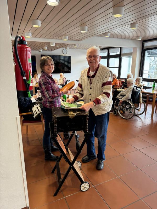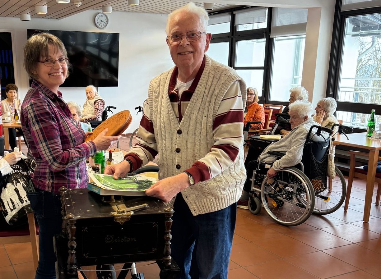 Beim Einzug unseres Bewohners Gebhard Diesch sagte seine Tochter Frau Steidl, dass ihr Vater sehr gerne mal zu einem „Drehorgelkonzert“ einladen würde. Schnell war ein Termin gefunden. Das besondere Event sprach sich herum und am 14. Januar hatten sich gegen 15:30 Uhr viele interessierte Bewohnerinnen und Bewohner im Speisesaal versammelt.