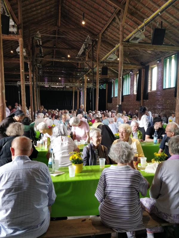 Zu einem zünftigen Mittagessen in der „Klosterscheune“ trafen sich die Gäste nach der heiligen Messe, wo zwei unterschiedliche Suppen serviert wurden. Anschließend gab es köstlichen Kuchen und Kaffee. Wasser und Saftgetränke standen bereit.