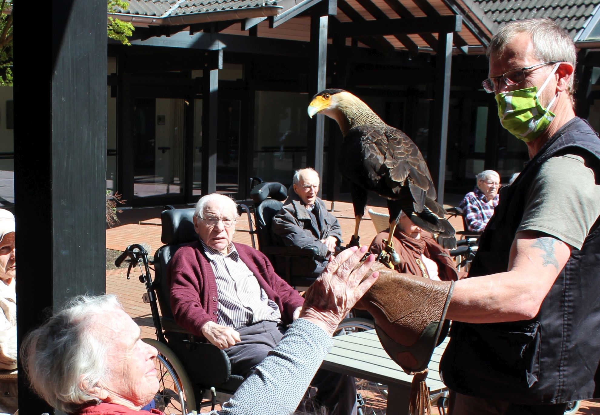 Bewohnerin Rosa Olk hätte gerne den schönen Karakara (Geierfalke) Coco angefasst.