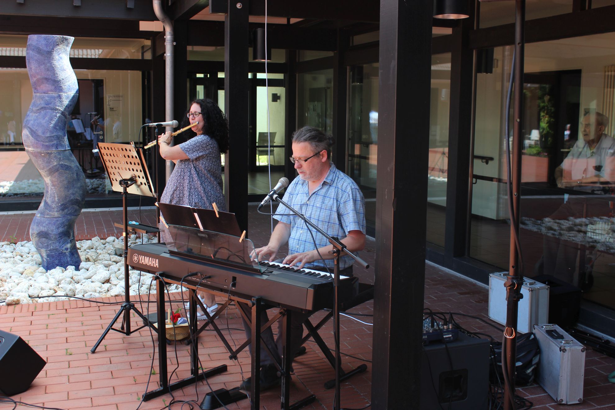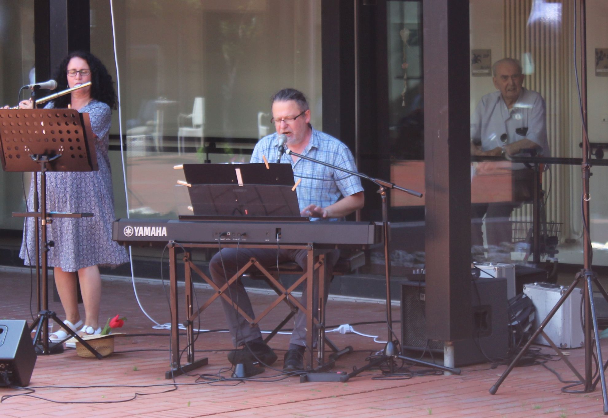 Nicht alle Bewohner waren in den Innenhof gekommen, der ein oder andere zog es vor, das Konzert hinter der Scheibe, in der Kühle des Flurs, zu genießen.