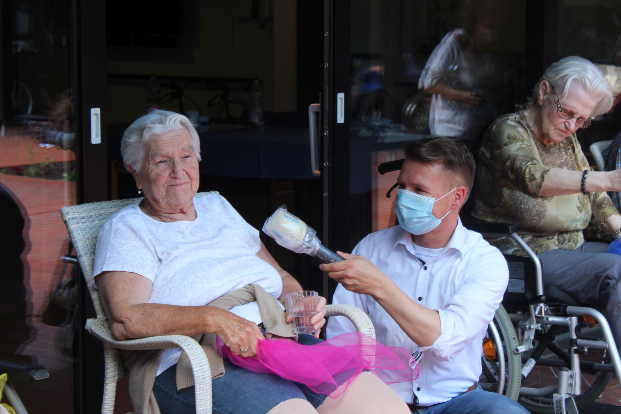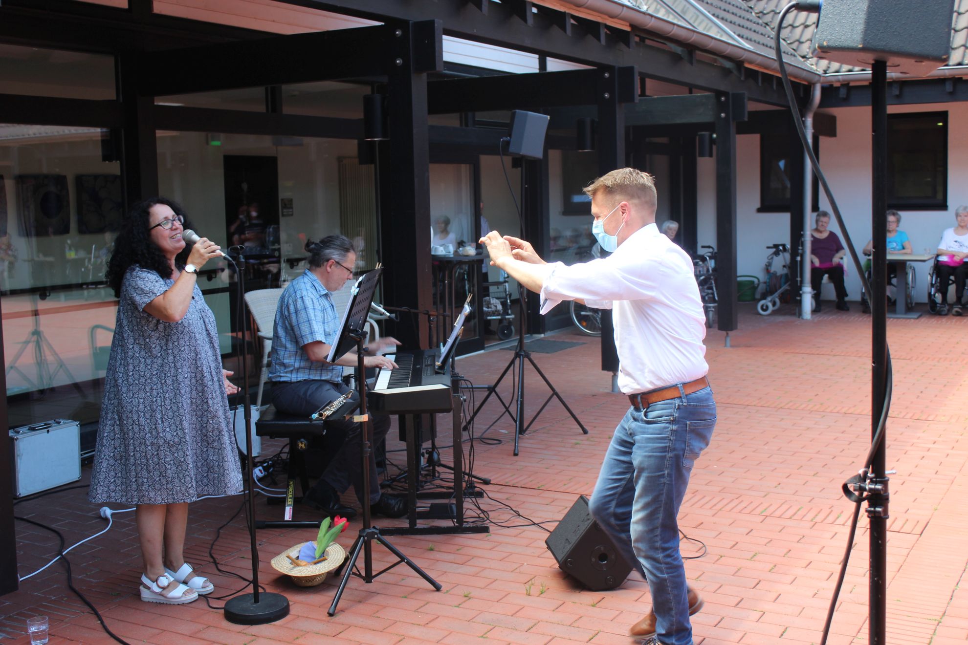 Unter dem Motto „FÜR EUCH DA #ZUSAMMENHALTEN“ begleitet SWR 4 Rheinland-Pfalz alle Hörer mit Informationen, Musik, Gruß- und Wunschsendungen. Um den Bewohnern von Altenheimen eine Freude zu machen, bringt SWR4 zurzeit Live-Musik in die verschiedenen Seniorenheime im Land. Hier gibt es jeweils ein kleines Konzert mit Schlagern und Klassikern. Uns besuchte SWR4 am Donnerstag, dem 25. Juni. Im Innenhof gab es für die Bewohner ein kleines Konzert mit SWR4 Musikredakteur Ernst Seitz am E-Piano zusammen mit seiner Partnerin Susanne Veidt an Querflöte und Gesang.