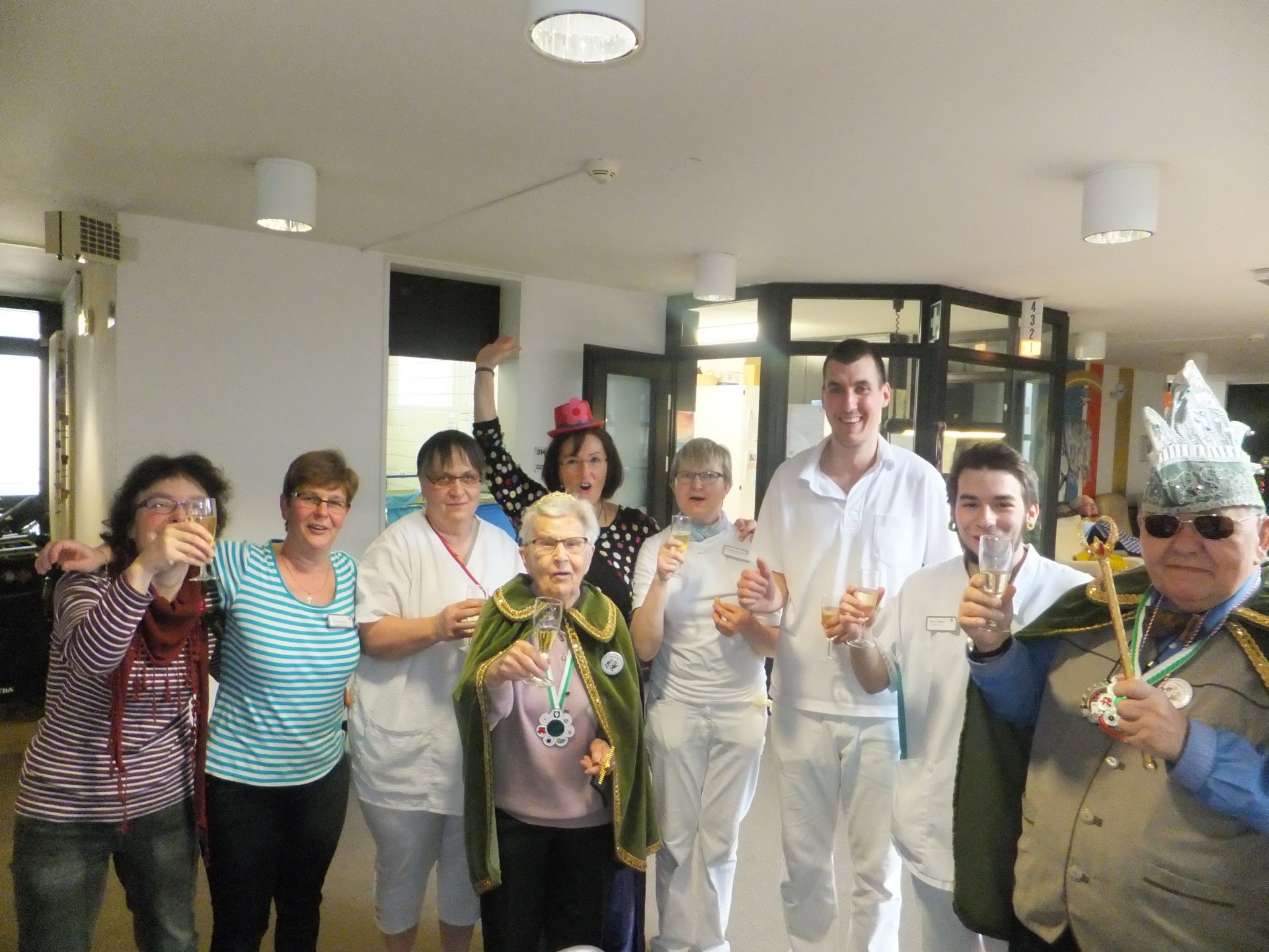 Am Fetten Donnerstag übernahm das neue Hausprinzenpaar Prinz Jacques, ein Meister der antiken Holzkunst mit seiner Lieblichkeit Prinzessin Hildegard I. von Maßband, Schere und immerwährender Hilfe um 11:11 Uhr das Regiment des Hauses. Eine Karawane, bestehend aus Tollitäten, Mitarbeitern und Schwestern zogen mit Musik, Mutzen und Getränken von Wohnbereich zu Wohnbereich.