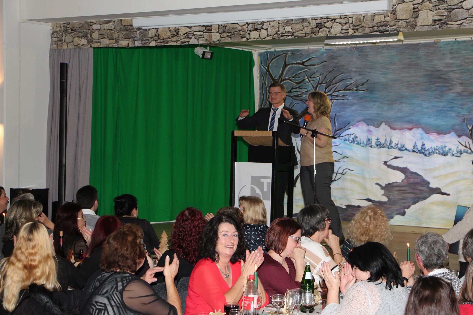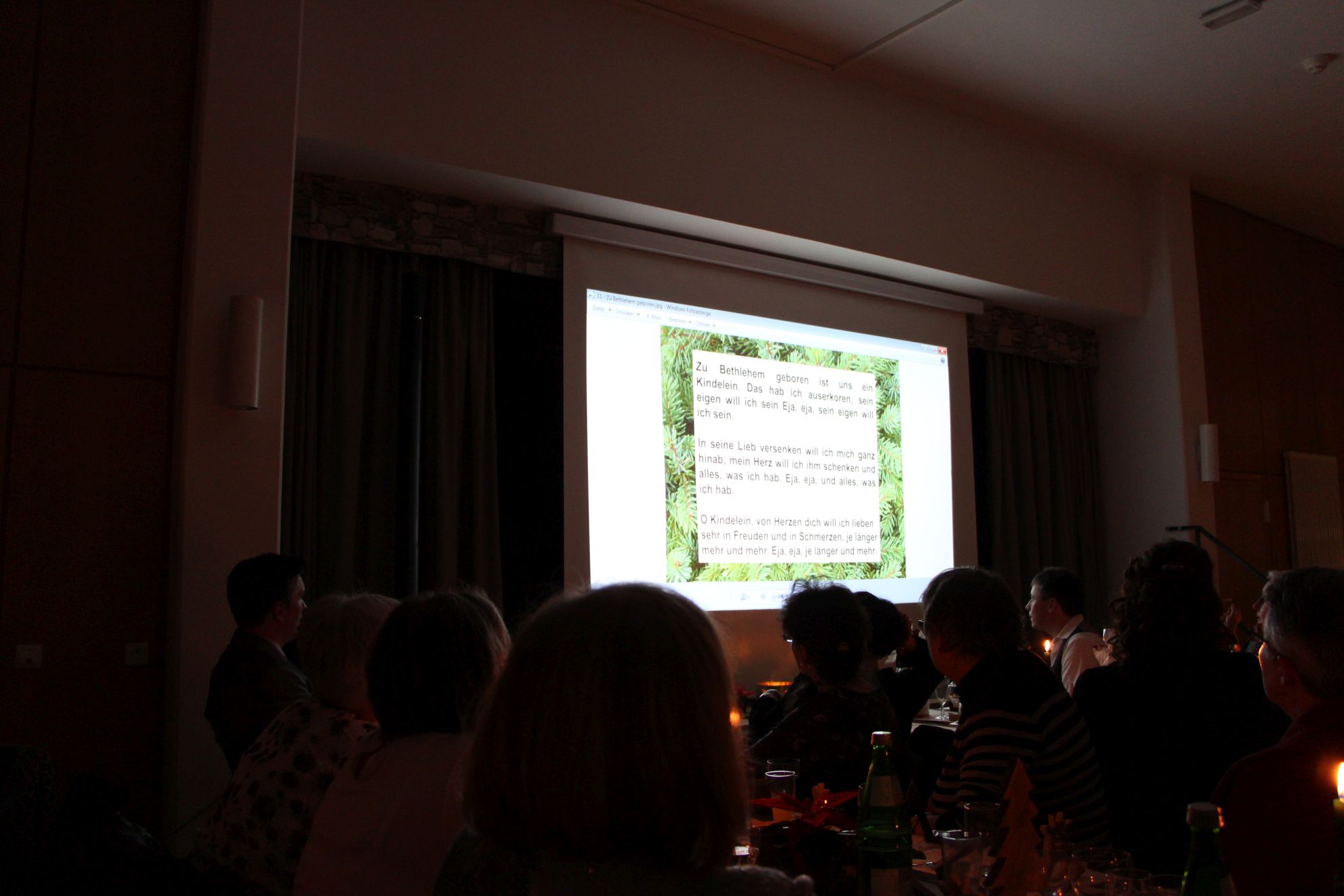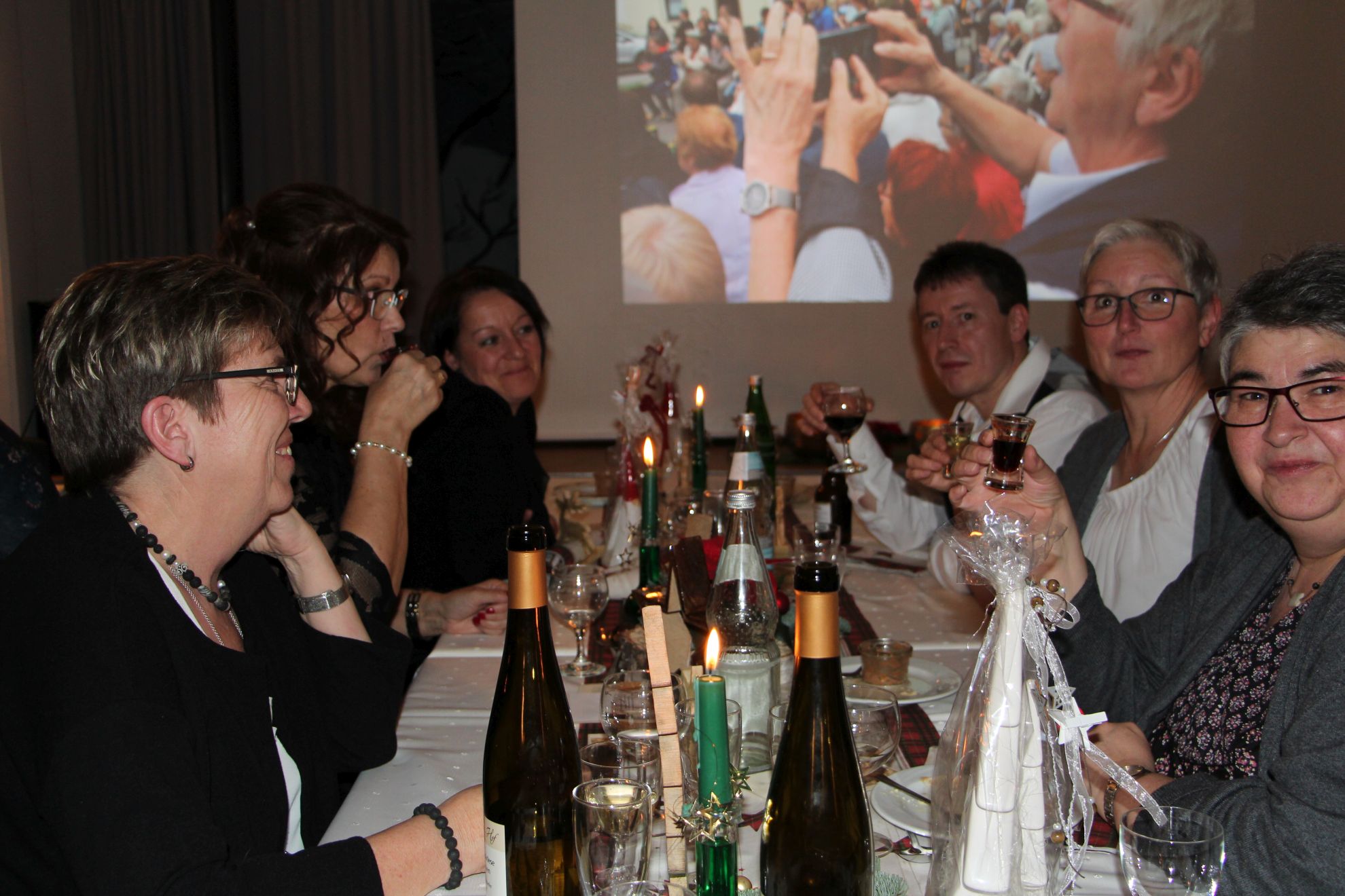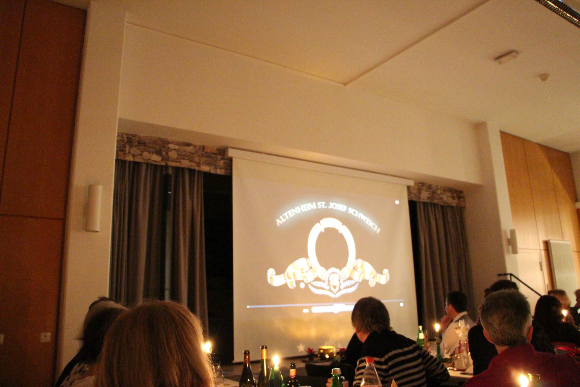 Traditionell begann die Adventsfeier der Mitarbeiter mit einer hl. Messe, die Dechant Dr. Ralph Hildesheim zelebrierte. Sr. Ana Rech hatte den Gottesdienst mit einem Liturgieteam vorbereitet. Die Feier stand unter dem Thema: "Anderen begegnen - Gott erfahren". Der weltliche Teil der Feier begann mit einem Sektempfang im Saal. Noch vor dem reichhaltigen Abendessen dankte Marianne Biehl, Vorsitzende des Bewohnerbeirates, den Mitarbeitern für die geleistete, vorbildliche Arbeit im laufenden Jahr und für das herzliche Klima im Haus. Danach folgte eine Ansprache der stellvertretenden Einrichtungsleiterin und Pflegedienstleiterin Uta Kirsten. Während des Abendessens wurden in einer von Eva und Michael Lorenc zusammengestellten PowerPoint-Präsentation die Ereignisse aus 2017 vorgestellt. Nach dem Hauptgericht folgten Gedichtvorträge von Brigitte Bronnbauer und Maria Frings. Danach wurde der Adventskalender mit vielen kleinen Überraschungen geöffnet und während des Nachtischs wurde der neueste Film unseres Heimbewohnertheater Frohsinn präsentiert: "Nils sucht Bethlehem". Zum Abschluss des Programms sprach Heimbewohnerin Maria Brass noch ein Gedicht und brachte mit humorvollen Sprüchen den Saal zum toben. Kurz vor dem Morgengrauen fanden die letzten Gäste nach einem wunderschönen Fest und harmonischen Beisammensein zufrieden den Ausgang.