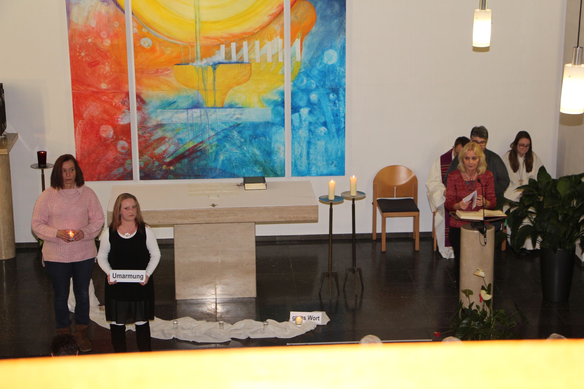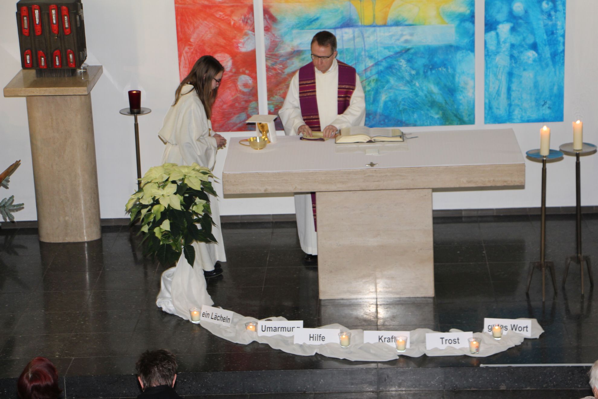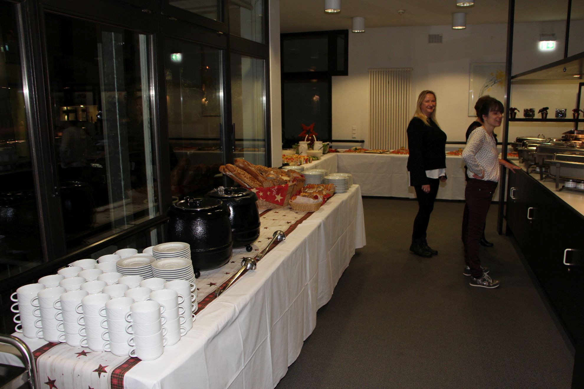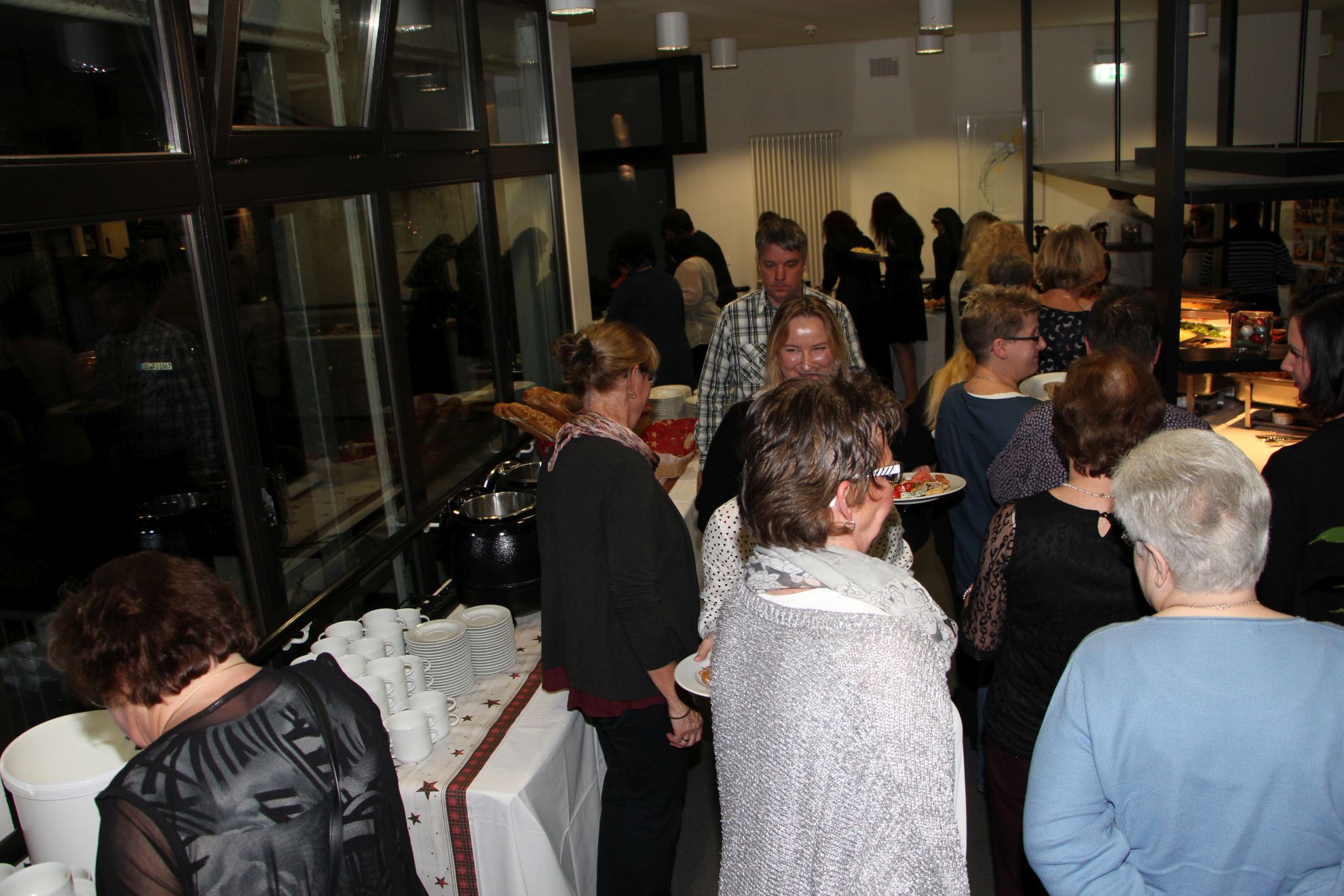 Traditionell begann die Adventsfeier der Mitarbeiter mit einer hl. Messe, die Dechant Dr. Ralph Hildesheim zelebrierte. Sr. Ana Rech hatte den Gottesdienst mit einem Liturgieteam vorbereitet. Die Feier stand unter dem Thema: "Anderen begegnen - Gott erfahren". Der weltliche Teil der Feier begann mit einem Sektempfang im Saal. Noch vor dem reichhaltigen Abendessen dankte Marianne Biehl, Vorsitzende des Bewohnerbeirates, den Mitarbeitern für die geleistete, vorbildliche Arbeit im laufenden Jahr und für das herzliche Klima im Haus. Danach folgte eine Ansprache der stellvertretenden Einrichtungsleiterin und Pflegedienstleiterin Uta Kirsten. Während des Abendessens wurden in einer von Eva und Michael Lorenc zusammengestellten PowerPoint-Präsentation die Ereignisse aus 2017 vorgestellt. Nach dem Hauptgericht folgten Gedichtvorträge von Brigitte Bronnbauer und Maria Frings. Danach wurde der Adventskalender mit vielen kleinen Überraschungen geöffnet und während des Nachtischs wurde der neueste Film unseres Heimbewohnertheater Frohsinn präsentiert: "Nils sucht Bethlehem". Zum Abschluss des Programms sprach Heimbewohnerin Maria Brass noch ein Gedicht und brachte mit humorvollen Sprüchen den Saal zum toben. Kurz vor dem Morgengrauen fanden die letzten Gäste nach einem wunderschönen Fest und harmonischen Beisammensein zufrieden den Ausgang.