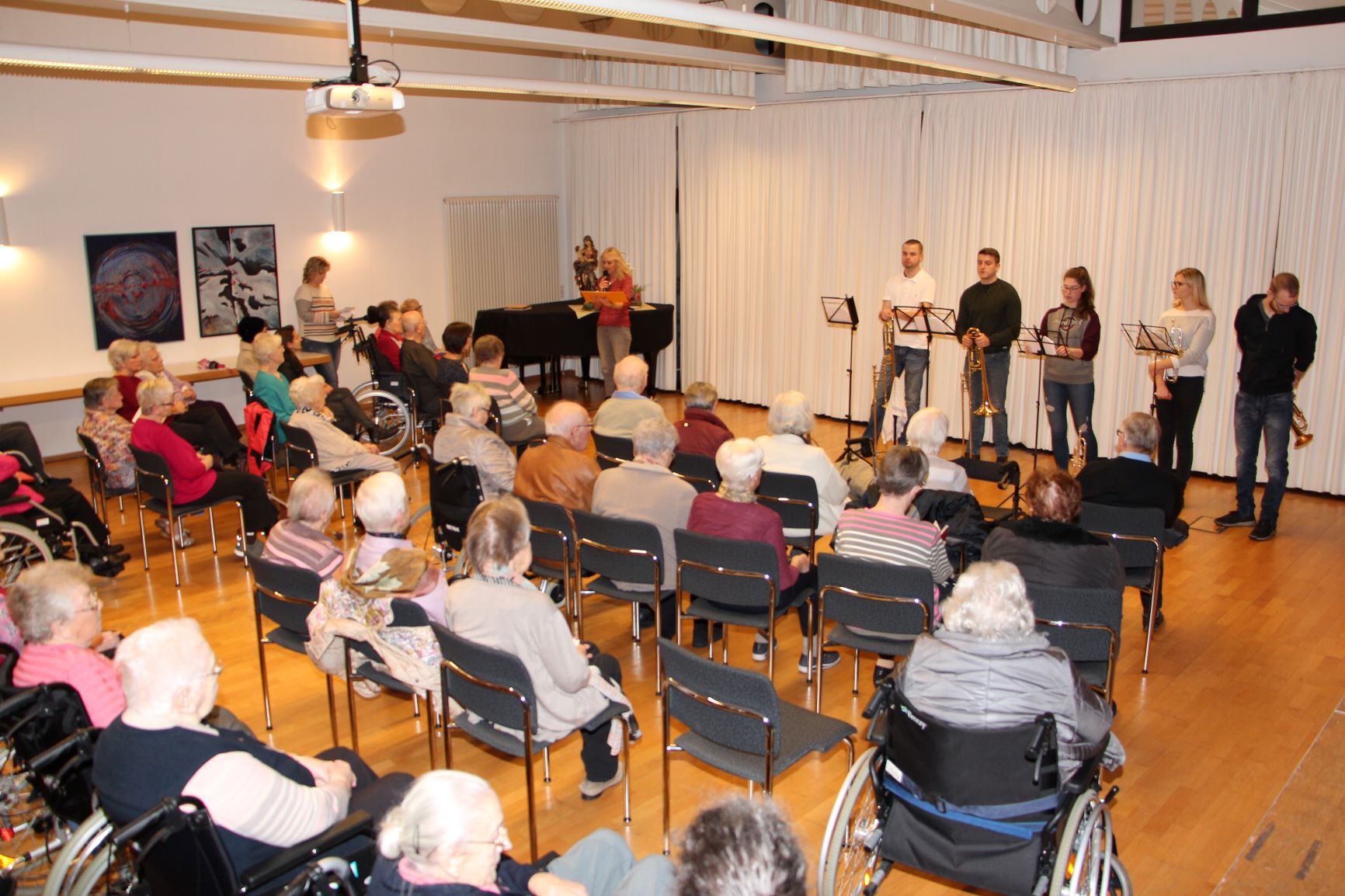 Pausen und zum Abschluss Advents- und Weihnachtslieder, die vom Publikum im