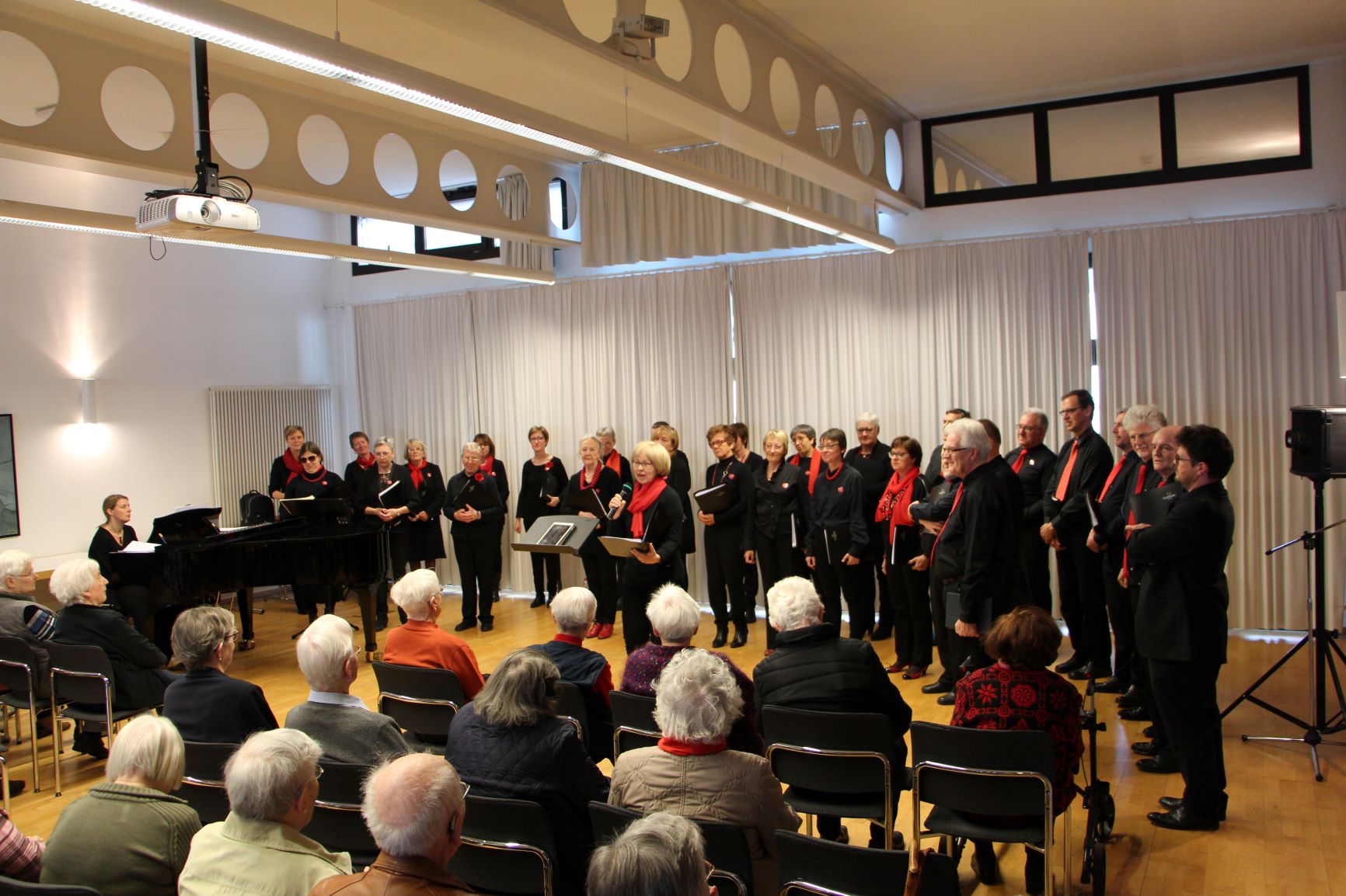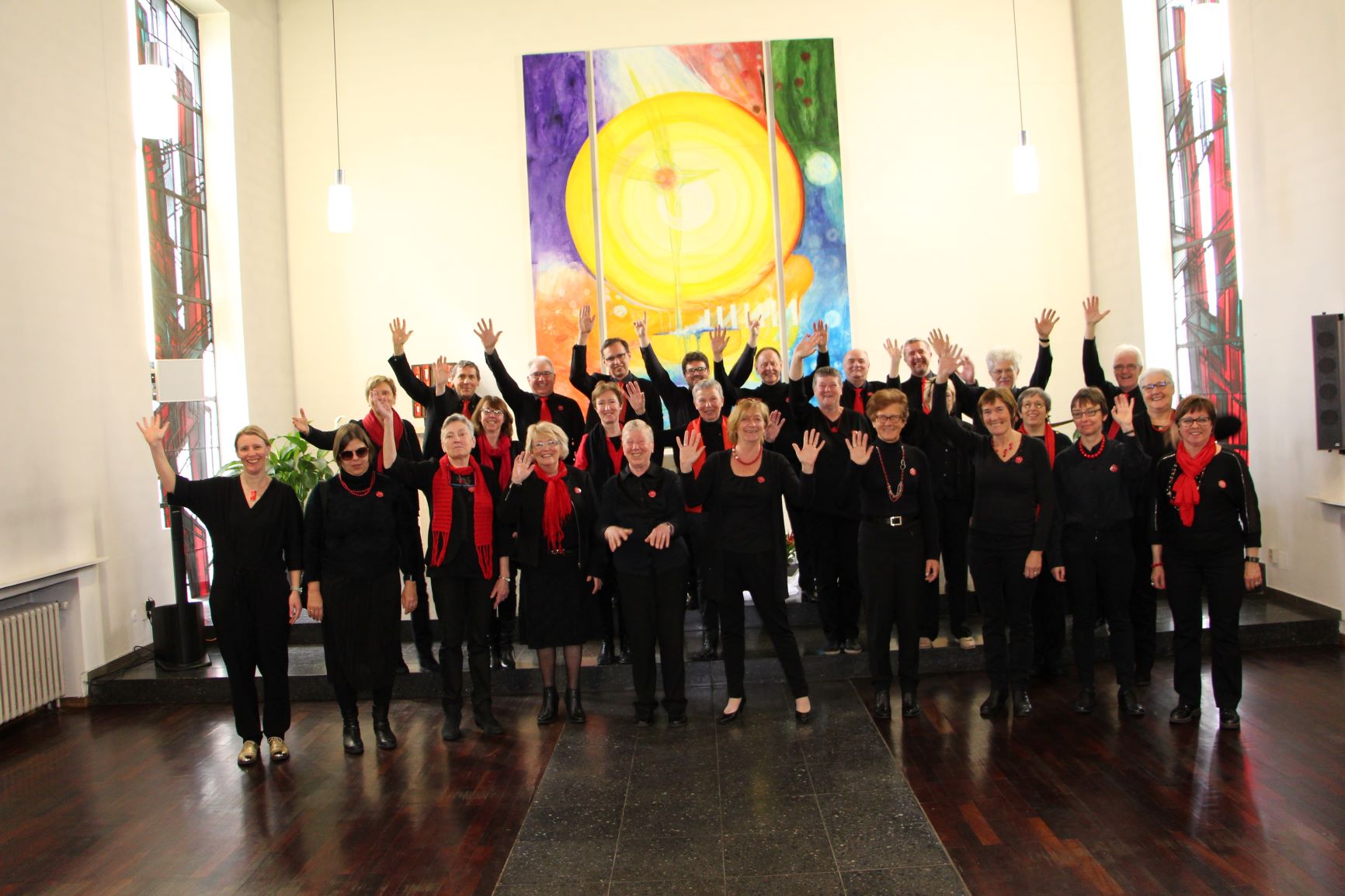 deutschsprachigen Lieder gesungen wurden. Dennoch konnte der 50 köpfige Chor mit seiner Stimmgewalt das