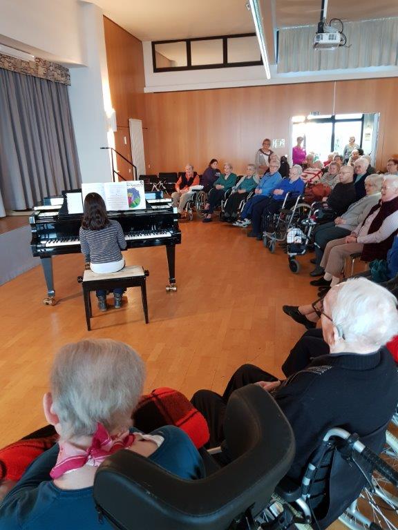 Das verständnisvolle Publikum, u.a. auch die Tagespflegegäste, die vollständig an diesem Nachmittag anwesend waren, dankten den beiden mit großem Applaus. Der ein oder andere verspielte Ton wurde mit einem augenzwinkernden Lächeln bedacht. Die Aufregung konnte so schnell bei den beiden verfliegen und die Freude fürs Klavierspielen überwiegen. Einrichtungsleiterin Uta Kirsten bedankte sich am Ende und konnte beiden Jung-Pianisten das Versprechen abnehmen, dass es im nächsten Jahr wohl ein Wiederholungskonzert geben wird.