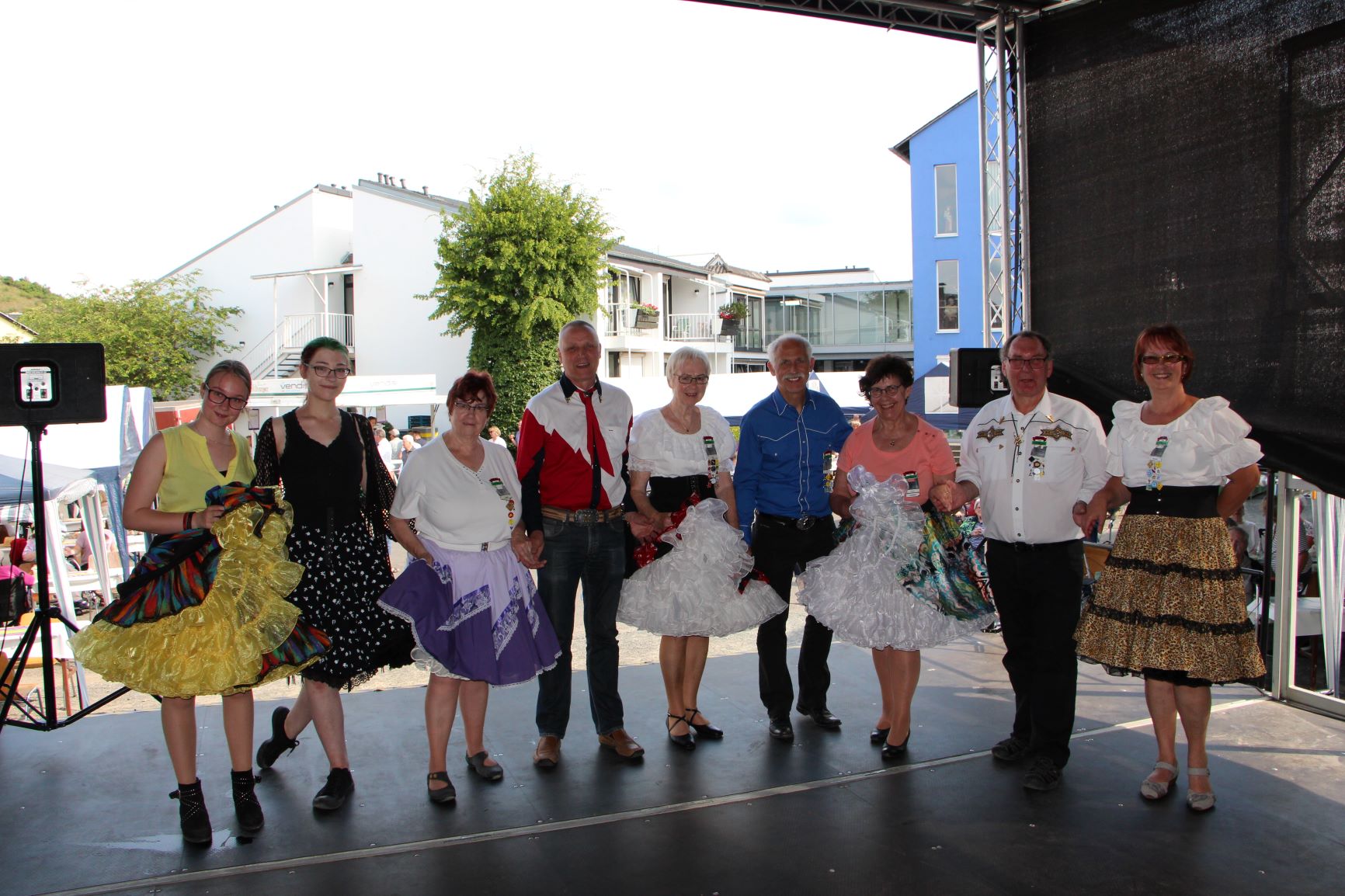 Der "Porta Nigra Zoomers Squaredance Club Trier" präsentierte flotte Tänze aus dem wilden Westen zu Gesängen unserer Mitarbeiterin Christine Franzen.