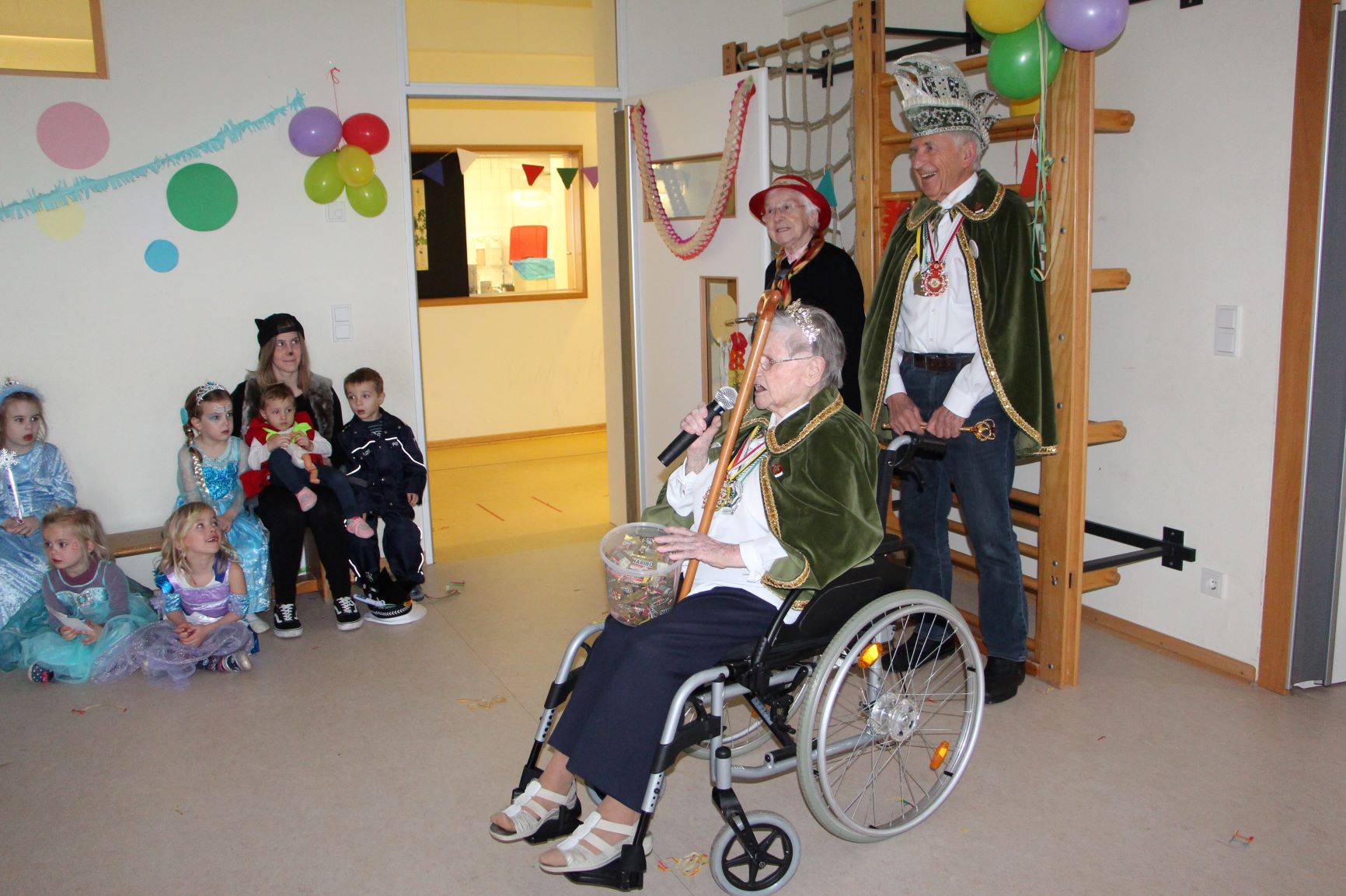 Danach stand für das Hausprinzenpaar ein Termin im benachbarten Kindergarten St. Martin an, wo es von den Kindern und Betreuerinnen freudestrahlend empfangen wurde.