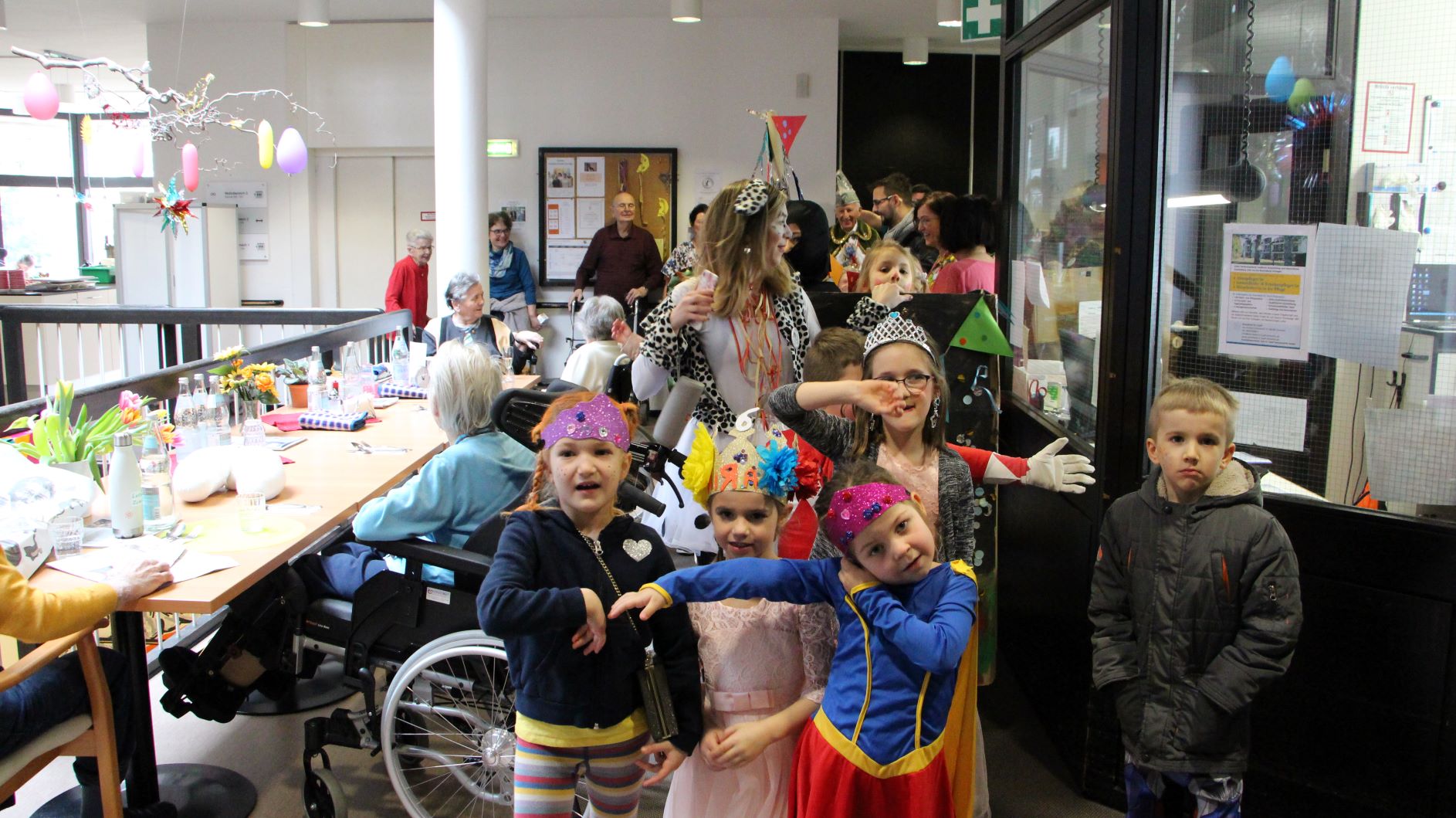 zogen mit einer illustren Narrenschar und mit Kindern und Betreuern vom