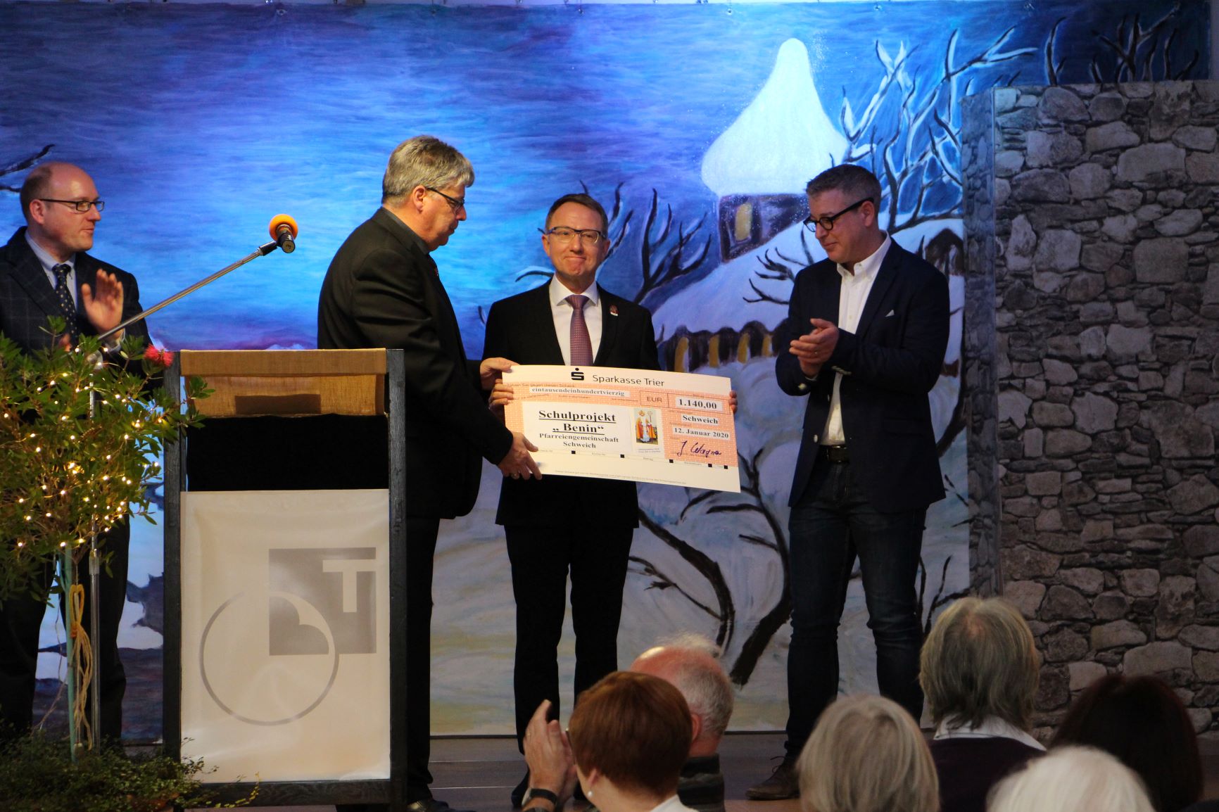 Joachim Wagner freute sich über die diesjährigen Einnahmen anlässlich der traditionellen Nikolausaktion der Kolpingfamilie Schweich, bei der die „Nikoläuse“ Kai Rössler, Sven Wiedemann und Joachim Wagner mehr als 50 Haushalte besucht und für das Schulprojekt in Benin 1.140,00 € gesammelt haben.
