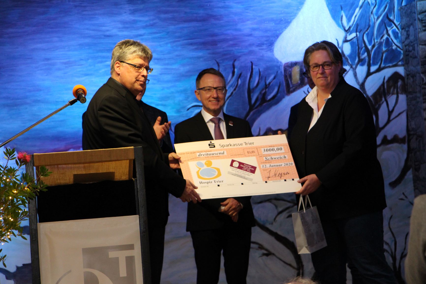 Die 1. Vorsitzende vom Hospiz Verein Trier e.V., Dr. Ulrike Graßnick, freute sich, als sie die stattliche Einnahme vom Adventskonzert sowie vom Glühweinverkauf der Messdiener an Heilig Abend mit einem symbolischen Scheck über 3.000,00 € entgegennahm.