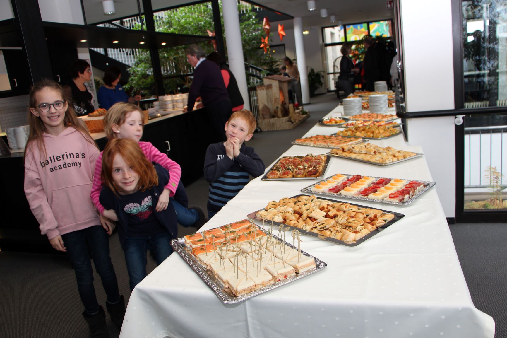 Nach dem Festgottesdienst und vielen Neujahrsworten freuten sich die Gäste, als Pfarrer Dr. Hildesheim schließlich das Buffet eröffnete und den Saal für geselligen Austausch freigab.