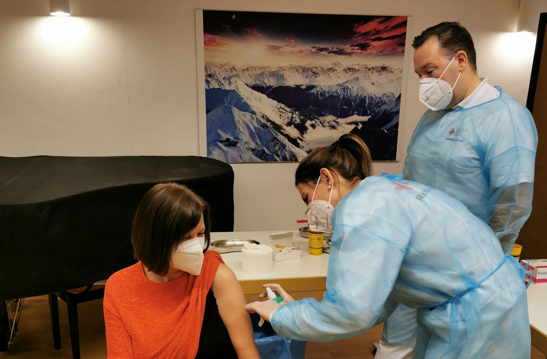 Mitarbeiterin Marlene Clemens bei der Zweitimpfung am 11.2.2021