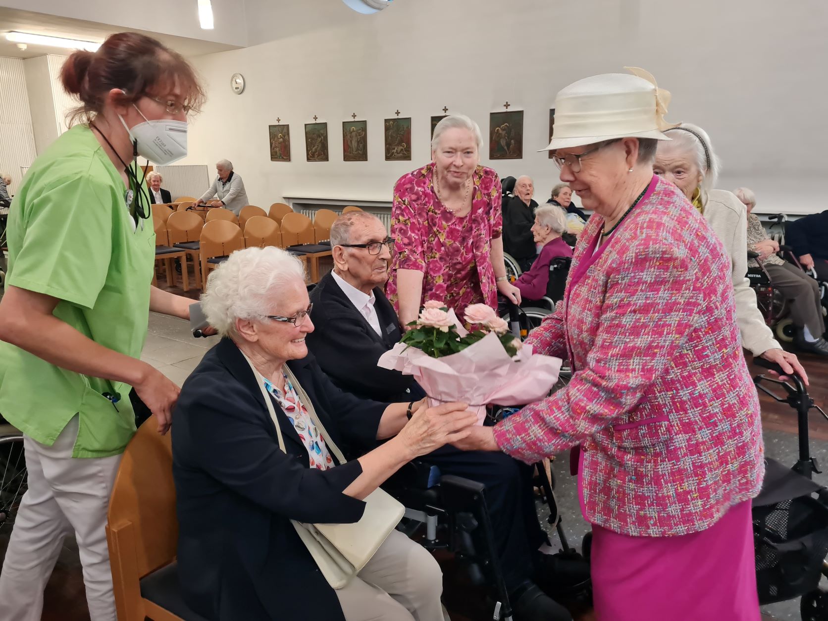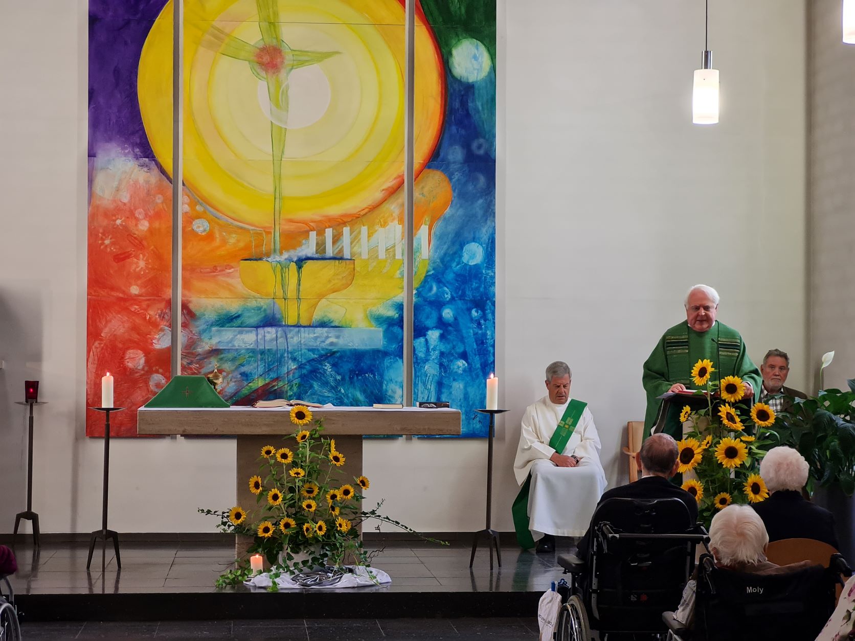 In einem feierlichen Dankgottesdienst am Sonntag, 8. August, der von Pastor Hermann-Josef Reckenthäler und Diakon Wilhelm Kunzen feierlich zelebriert wurde, haben die Bewohnerinnen und Bewohner gemeinsam mit den Ordensschwestern und Angehörigen Gott für die 65 glücklichen Ehejahre gedankt.