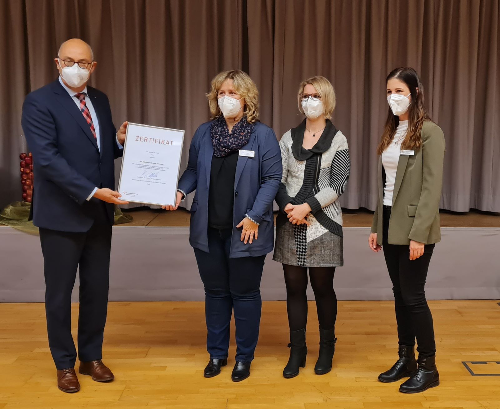 Wir freuen uns sehr darüber, dass unser Engagement nun in den öffentlichen Fokus gerückt ist, denn am 29. November überreichte der Chef der Agentur für Arbeit Trier, Heribert Wilhelmi, in Anwesenheit von Presse und geladenen Gästen ein sogenanntes Inklusionszertifikat. „Durch das vorbildliche Engagement zeigt St. Josef beispielhaft, wie Inklusion gelingt. So erhalten junge Menschen, die es schwerer haben als andere, die Chance auf einen erfolgreichen Start ins Berufsleben und Perspektiven für ihre Zukunft“, lobte Heribert Wilhelmi. Mit dem Zertifikat will die Agentur für Arbeit Zeichen setzen und für die Beschäftigung von Menschen werben, die trotz guter Arbeitsmarktlage nicht zum Zuge kommen, weil sie über ihre Handicaps statt über ihre Stärken definiert werden.