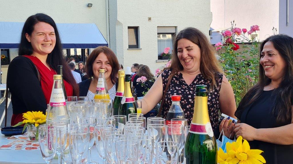 Rechtzeitig zum Angrillen waren alle Stadt-Rallye-Akteuere gemeinsam mit weiteren Kolleginnen und Kollegen zu einem kleinen Sektempfang an der großräumigen Feierlokation im Innenhof des Wohnhauses unserer indischen Ordensschwestern angekommen.