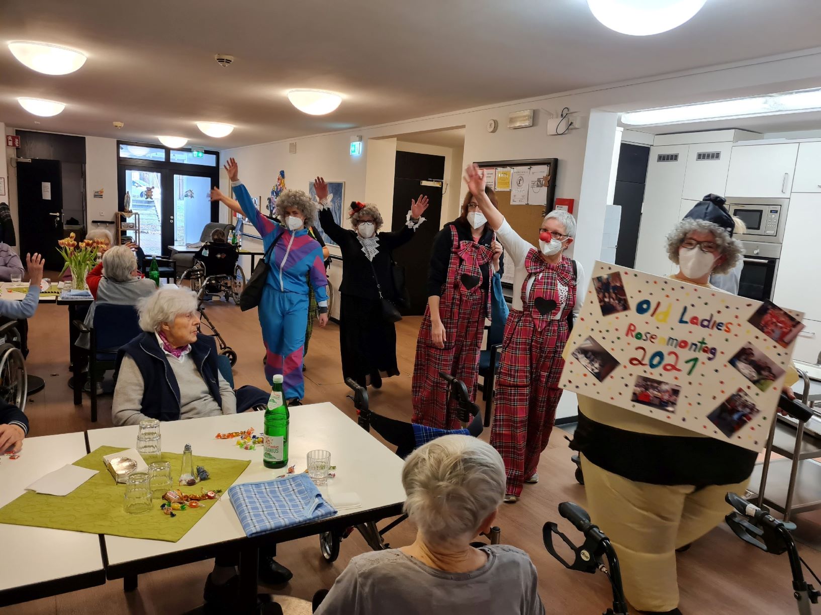 Als Überraschung gab es zur Freude von Bewohnern und Mitarbeitern noch einen kleinen Rosenmontagsumzug der „Old Ladys“ (MAV).