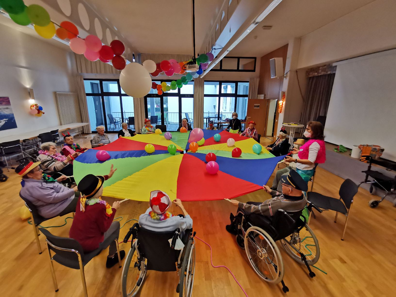 Ein von feierfreudigen Jecken bewohntes Altenheim leistet Widerstand und hält die Faschingsfahne hoch. Zwar waren unsere karnevalistischen Veranstaltungen nicht mit den Vorherigen zu vergleichen, denn es gab in dieser Session kein Nachtcafé mit Prinzenpaaren, Gardetänzerinnen und Blaskapelle und am Fetten Donnerstag wurden keine Krawatten abgeschnitten, sondern mit Impfspritzen „bewaffnete“ Fachkräfte piksten Bewohner und Mitarbeiter.