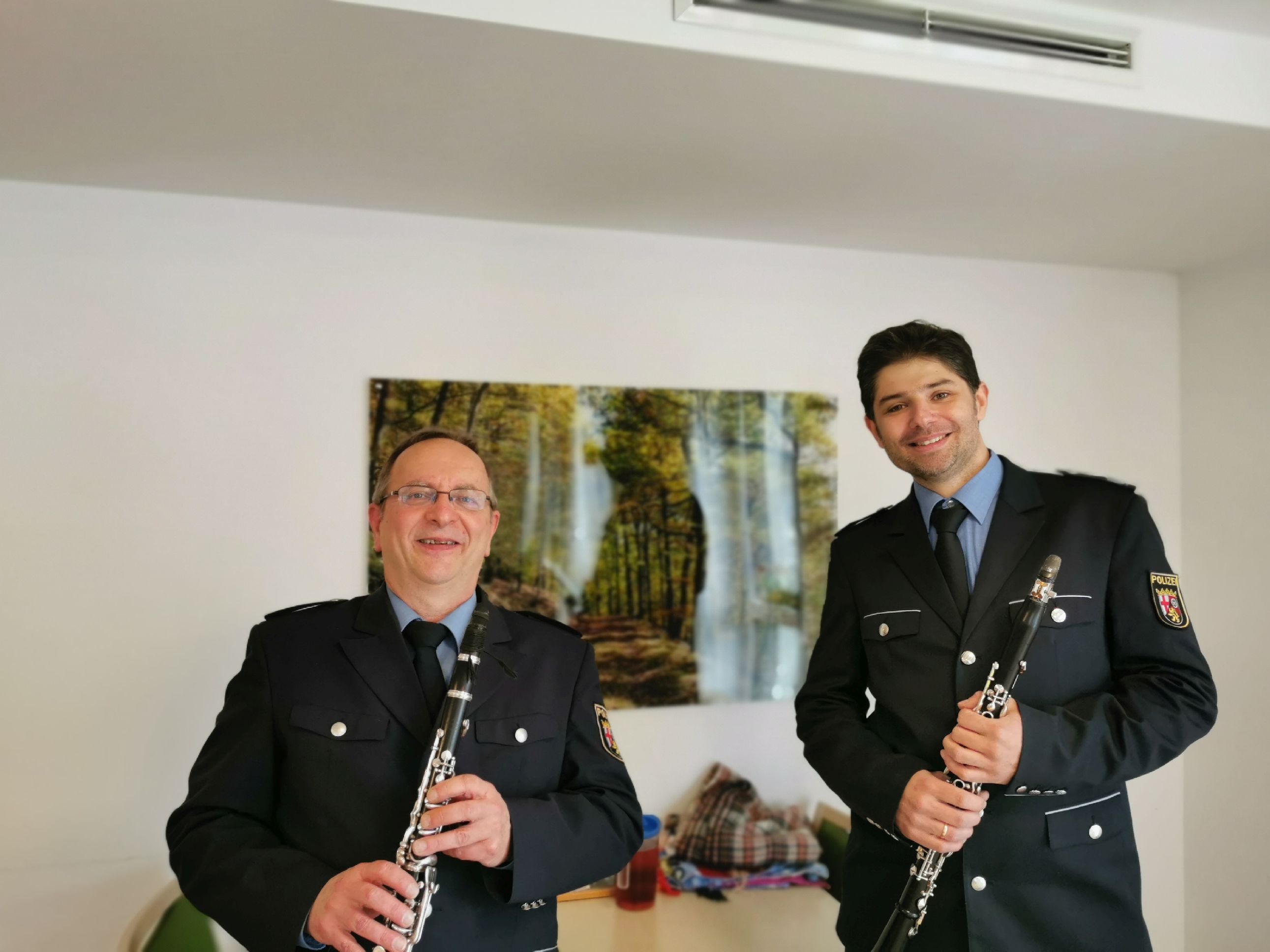 v.l. Peter Matejcek ist das älteste und Fryderyk Jona das jüngste Mitglied des Polizeiorchesters Rheinland-Pfalz.