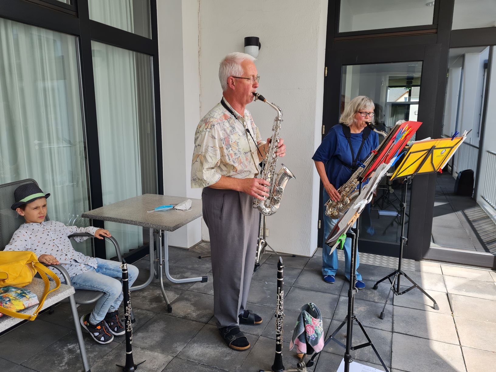 Am Freitag erfreute uns das Ehepaar Christine und Gert Spies aus Ehrang mit ihrem achtjährigen Enkel Felix mit beschwingten Klarinetten- und Saxophonklängen.